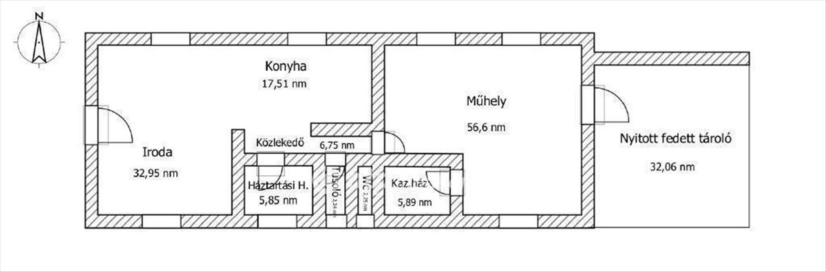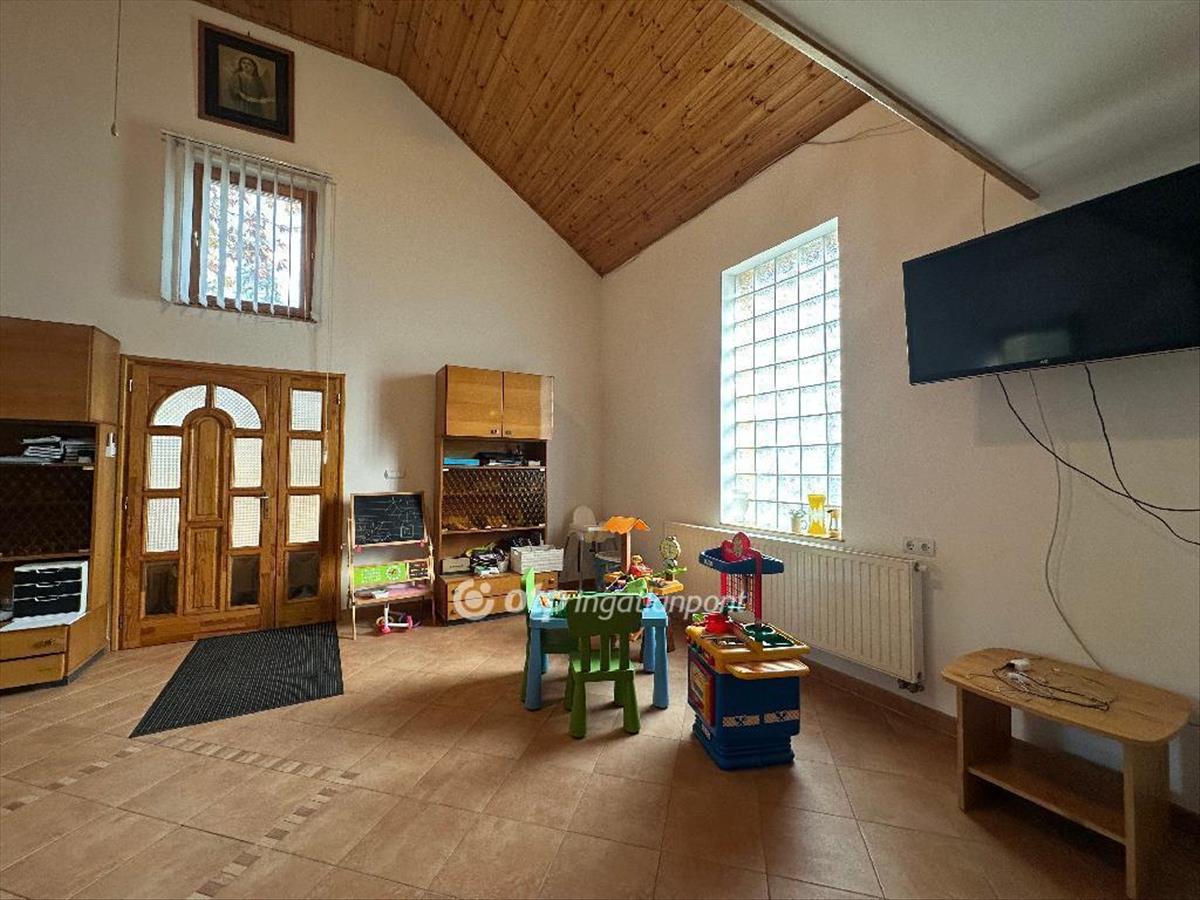 A fő épület 129 nm . Modern, jól karbantartott. Megtalálható benne iroda, konyha, tusoló, wc, háztartási helység, közlekedő, galéria. a fő épületből közvetlenül nyílik egy 56 nm -es műhely, kazánházzal és egy 32 nm -es nyitott, fedett tároló. Az épület tetején napelemes rendszer működik, amely jelentősen csökkenti a rezsiköltségeket. a telken önálló, 110 nm -es, nagy belmagasságú szerelőcsarnok található, ami külön bejárattal rendelkezik. Ideális nagyobb teherautók, buszok, kamionok fogadására és szerelésére.