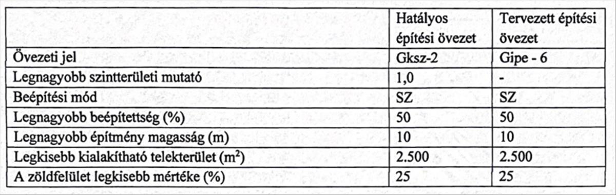 2db gipe6 (50% beépíthetőség) ipari terület: 3400 és 5400m2,