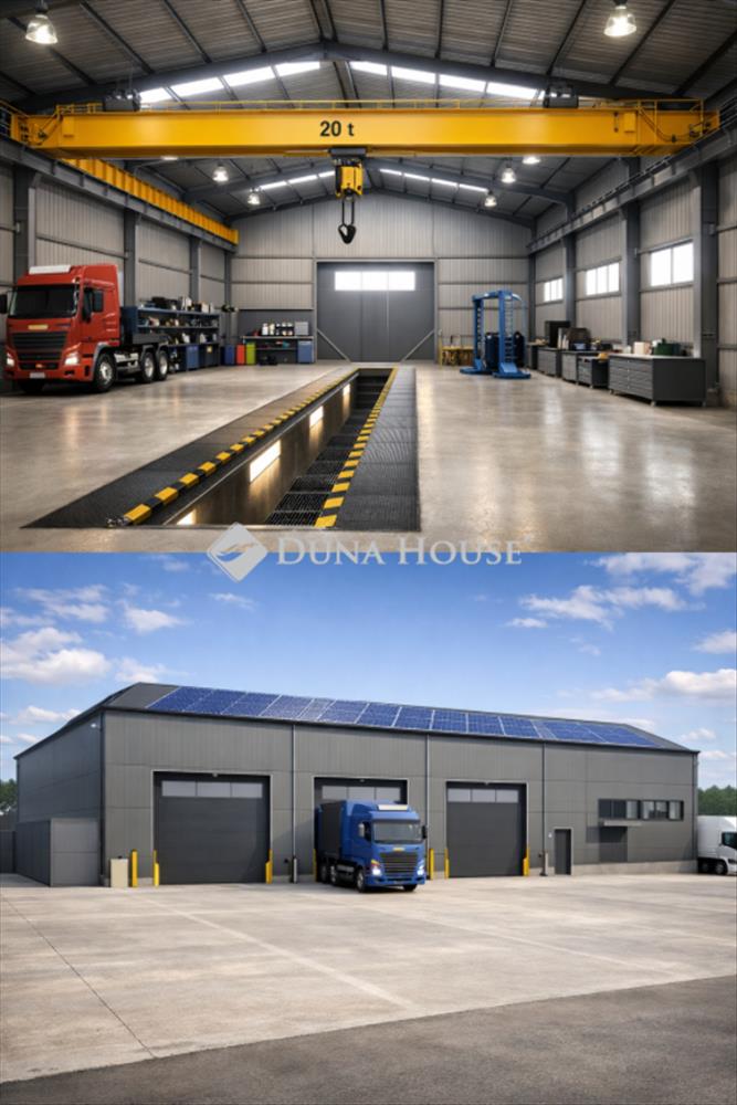 - 600 m²-es, szigetelt, fűthető csarnok, 5000m2 betonozott telek.