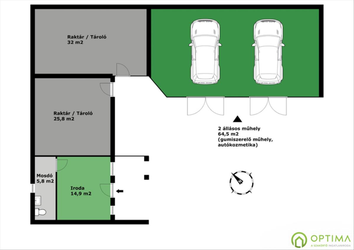 Az ingatlan kb. 65 m2 alapterületű műhelyében jelenleg 2 állásos munkaállomás áll rendelkezésre, így egyidőben 2 gépjármű gumizható.