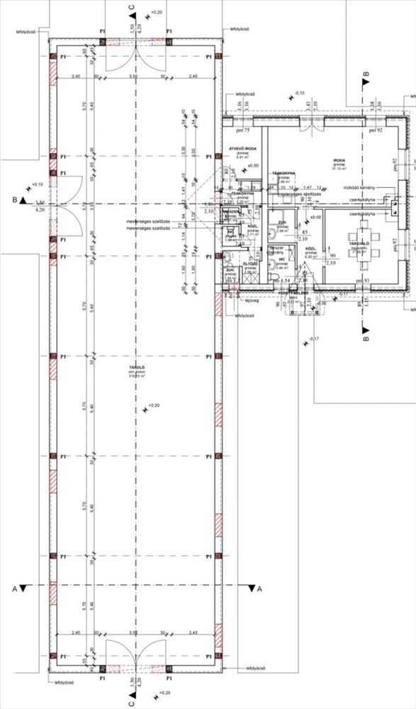 - Iroda és szociális részek: 107 m2