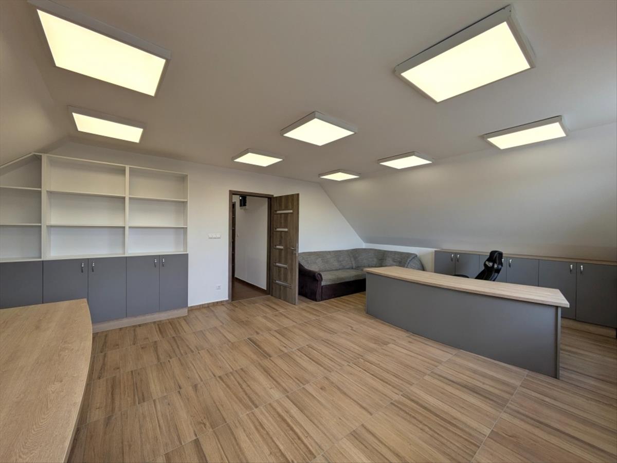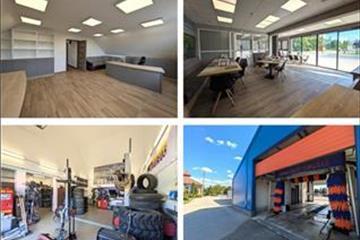 A földszinten – bruttó 200 négyzetméteren – engedéllyel rendelkező és jelenleg is működő autókozmetika, gumiszerelőműhely, ügyfélfogadó tér vizesblokkal, raktár, gépészeti helyiség, valamint dolgozói öltöző található.