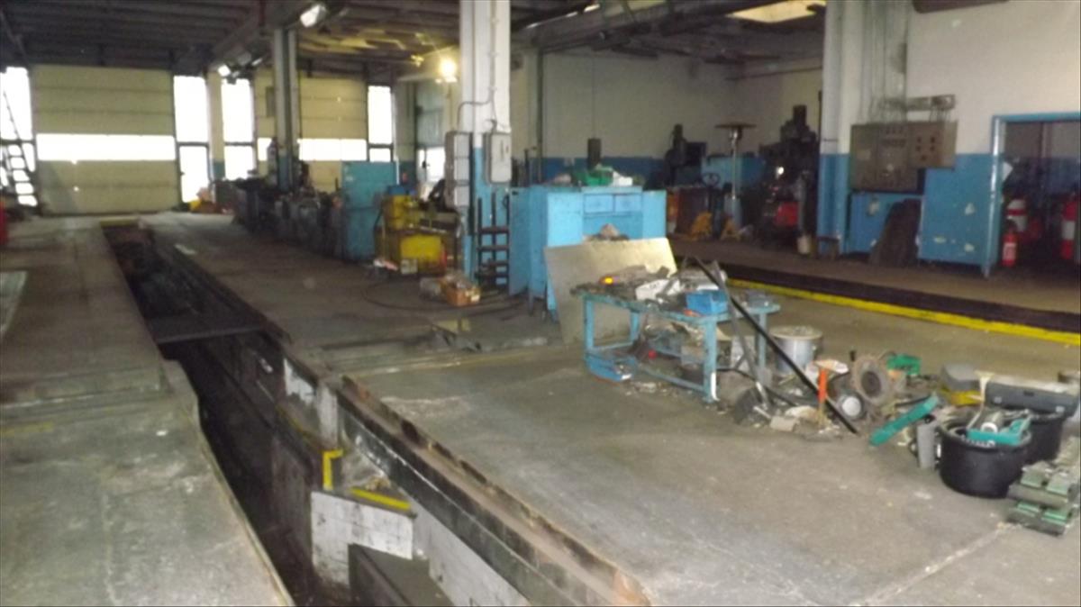 A műhelyben: 4, 5m a belvilág, 38 m hosszú, tehergépjárművek javítására kialakított 3, 5 beállás található, ebből 2 akna, fékpad, emelők, esztergályos és lakatos műhely kialakítva, raktárak, mosdó, wc, Scandoor kapuk, gáz sötétsugárzó fűtés.