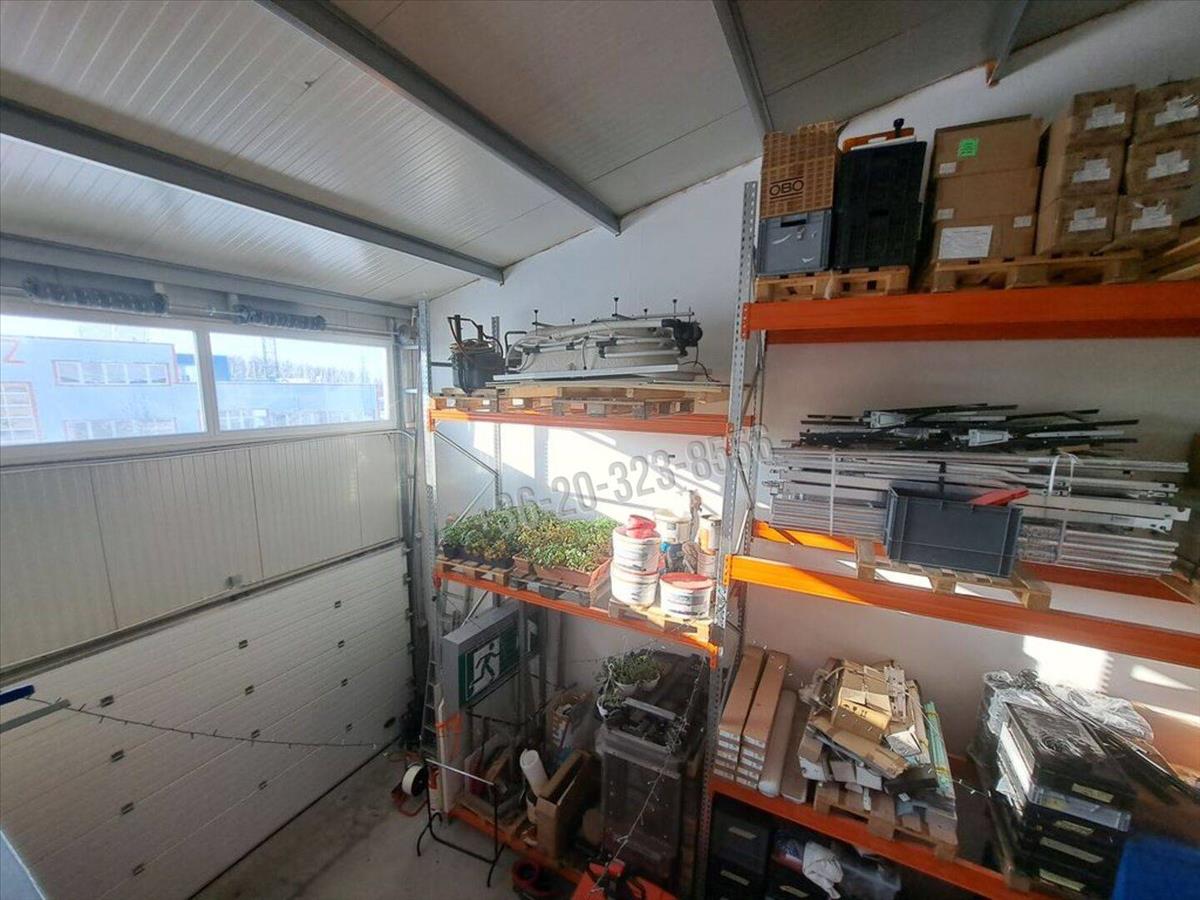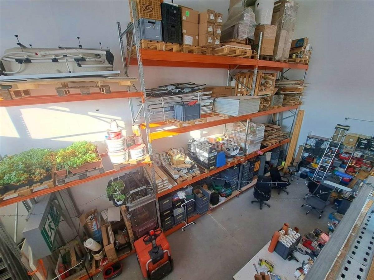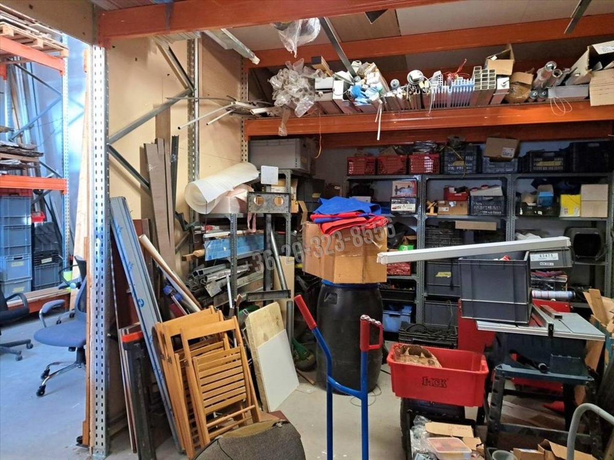 A teljes belmagasságú raktár rész polcrendszerrel felszerelt, 50 db raklap elhelyezésére alkalmas. Igény szerint az 5, 4m-re emelő elektromos gyalogkíséretű targonca is, az értékesítés része lehet, egyeztetés alapján.