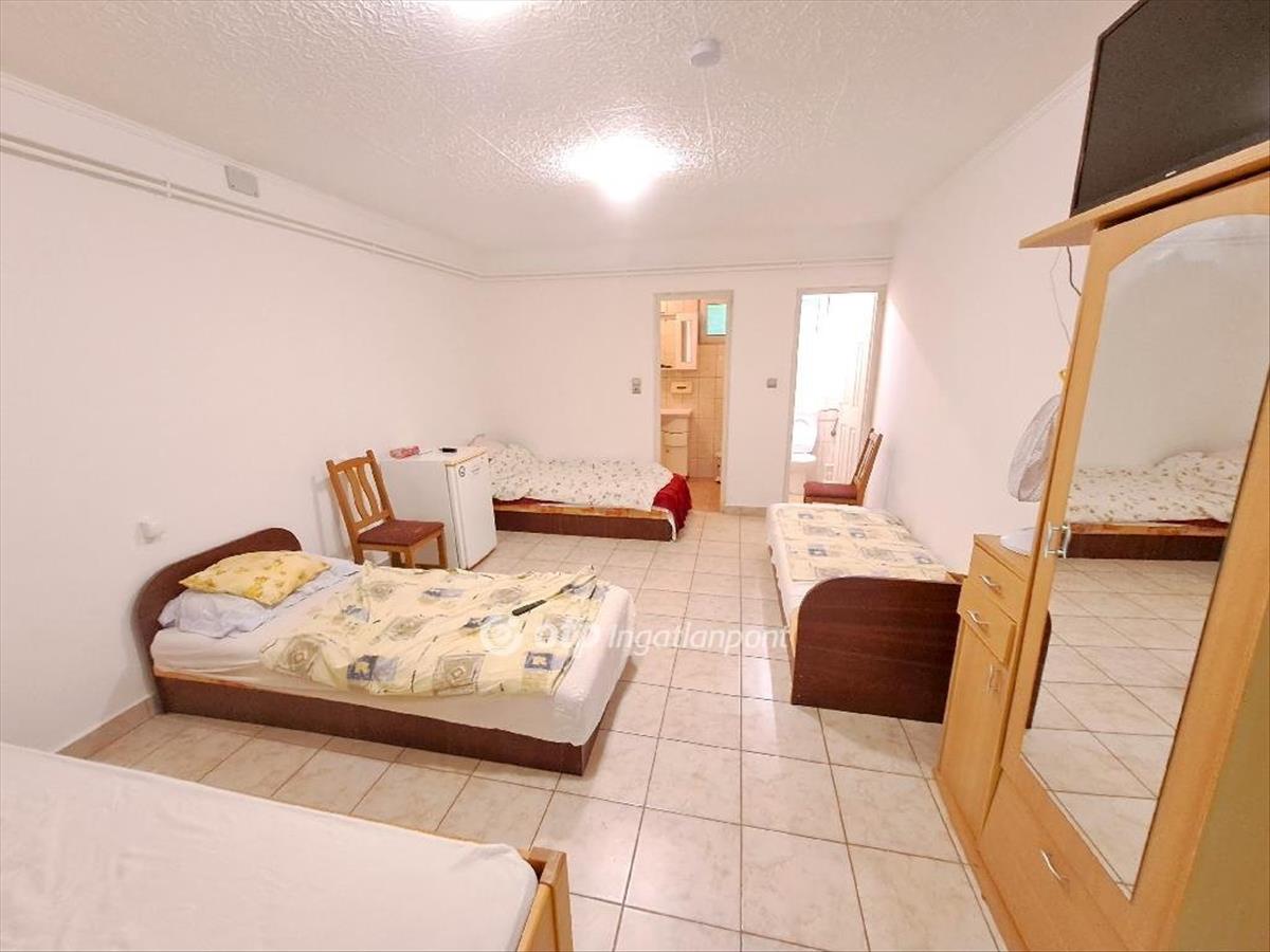 Bács-Kiskun vármegye, Solt belvárosi részén 200 m2 hasznos alapterületű kétszintes apartmanház a hozzátartozó 8000 m2 nagyságú telekterülettel, 16343 m2 telken eladó! a kereskedelmi egység a város központi részén található. a 2009-ben épült apartmanházban jelenleg egy 7 szobából álló, több férőhelyes munkásszállás üzemel, szobánként fürdőszoba-WC helyiséggel, tartós bérleti formában. Az apartmanház falazata tégla, homlokzata 10 cm-es hőszigeteléssel és kőporral kivitelezett, a födém tégla- beton, hőszigeteléssel ellátott, tetőszerkezete fa, égetett cserép héjazattal borított. a külső nyílászárók rehau típusú hőszigetelt műanyagok, a belsők normál fa szerkezetűek. a kétszintes apartmanház hét szobából, egy konyhából és egy étkezőből áll, minden helyisége járólappal borított. Az egységek fűtését és melegvíz ellátását több gázkazán, alternatív megoldásként vegyestüzelésű kazán biztosítja radiátoros hőleadással. Az apartmanházban több klíma is felszerelésre került. a telek ősfákkal tarkított, parkosított, az egész 1, 6 hektár körben bekerített, az aszfaltozott út felől gépjárművek behajtására több kapubejáró és 50 férőhelyes belső aszfaltozott parkoló biztosított. Az apartmanház köré nyitott úszómedence és egy teniszpálya is megépítésre került. Az épületek állagmegóvása, egy részének átépítése megtörtént, a szobák felújítása folyamatosan zajlik. Az ingatlan komplett berendezésével együtt eladó, beleértve a vendégszobák bútorzatát és az udvari kiegészítőket egyaránt.