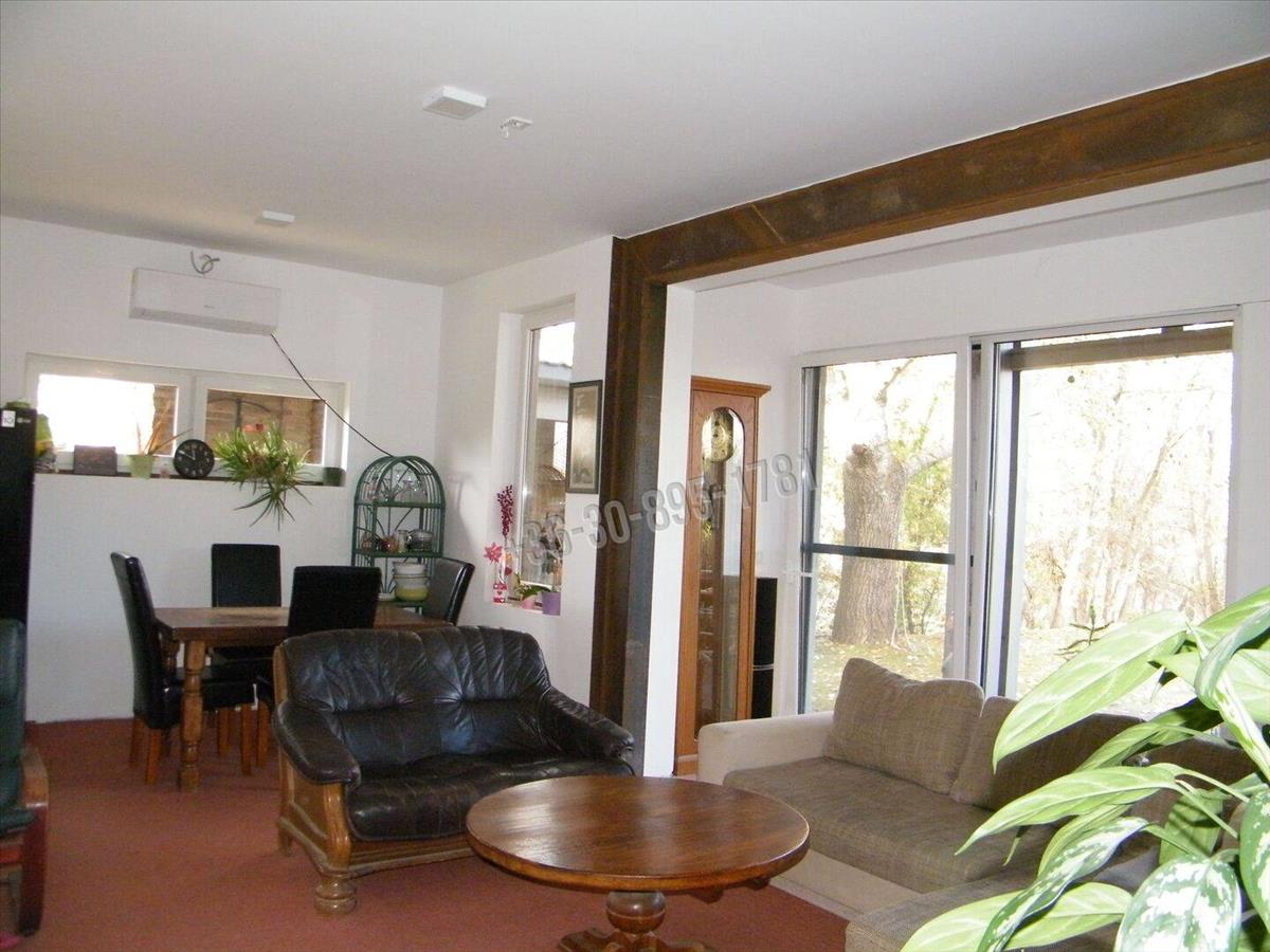 A kétszintes, 125 nm-es lakás és iroda épület helyiségei 4 szoba, két fürdőszoba, közlekedő terasz. Fűtés: padlófűtés faelgázosító kazánról, 2 hűtő-fűtő klíma; kandalló kémény kiépítve.