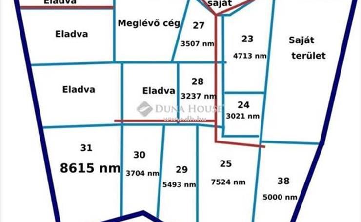 - 9 db kivett, beépítetlen terület van összesen, magánutakkal