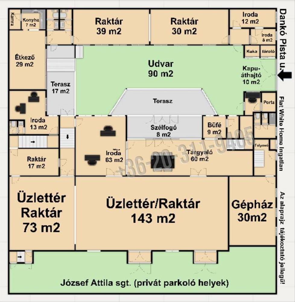 •Kávézó vagy étterem: a belső udvar intim, teraszos hangulatot biztosít; míg a József Attila sgt felöli bejáratnál saját használatú rész adott a kültéri elhelyezéshez. a környéken hiányzik egy minőségi vendéglátó egység – itt az esély, hogy a város új találkozóhelyét teremtsd meg.