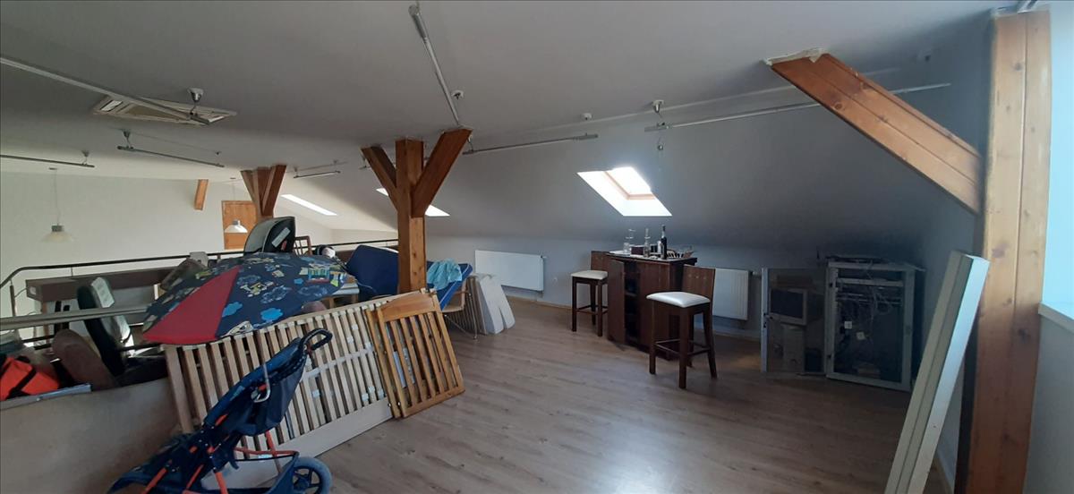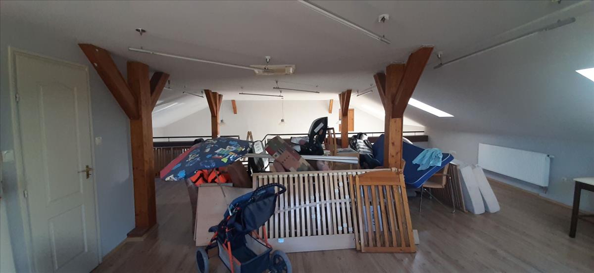 A második szinten van egy nagy tágas tárgyaló, szociális helyiségek, fürdőszobában.