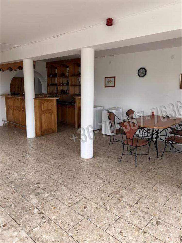 A bejárati szárnytól elindulva : reggeliző terem, étterem (50 fő befogadására alkalmas), hatalmas panorámás terasszal, egy bárral, konyha, 3 mosdó, 2 vendég wc, 1 személyzeti wc, személyzeti öltöző, tároló helyiség, iroda helyiség. Egy privát lakrész 2 szobával (hálószoba és nappali), fürdőszobával