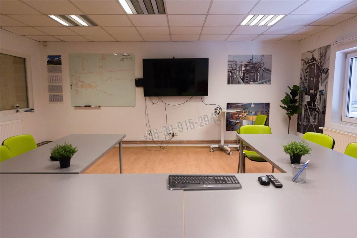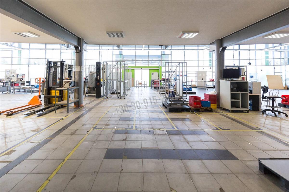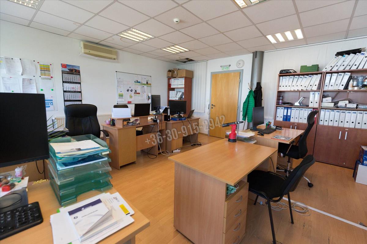 1550 nm földszinti gyártásra, bemutató terem céljára alkalmas terület, amelyből 1090 nm 4 m belmagasságú, fűtött, légkondicionált, 450nm iroda és szociális blokk.