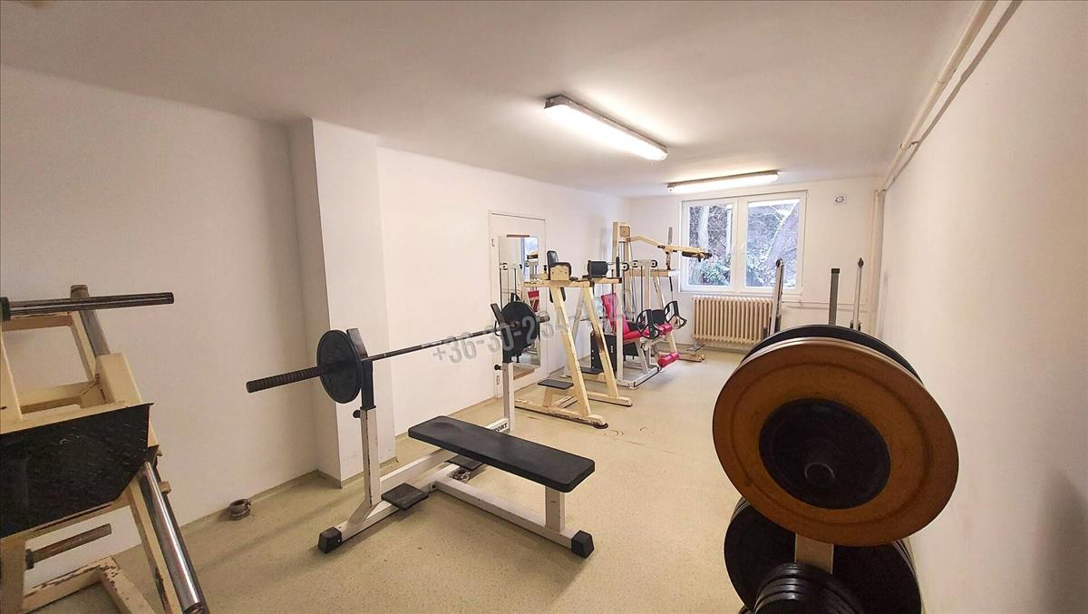 Az ingatlanban jelenleg több sportolási és kikapcsolódási lehetőség is rendelkezésre áll. (Szabadtéri és fedett pályás tenisz, labdarúgás, asztalitenisz, darts, jóga, táncoktatás, privát szauna) Nagy méretű, kiadó termei céges vagy családi rendezvények megtartására egyaránt alkalmasak. a lapos tetős téglaépületben fa nyílászárók vannak. Az ingatlan fűtését radiátoros hő-leadású gázkazán biztosítja. a belső hideg- és meleg burkolatok felújítása időszerűvé vált.