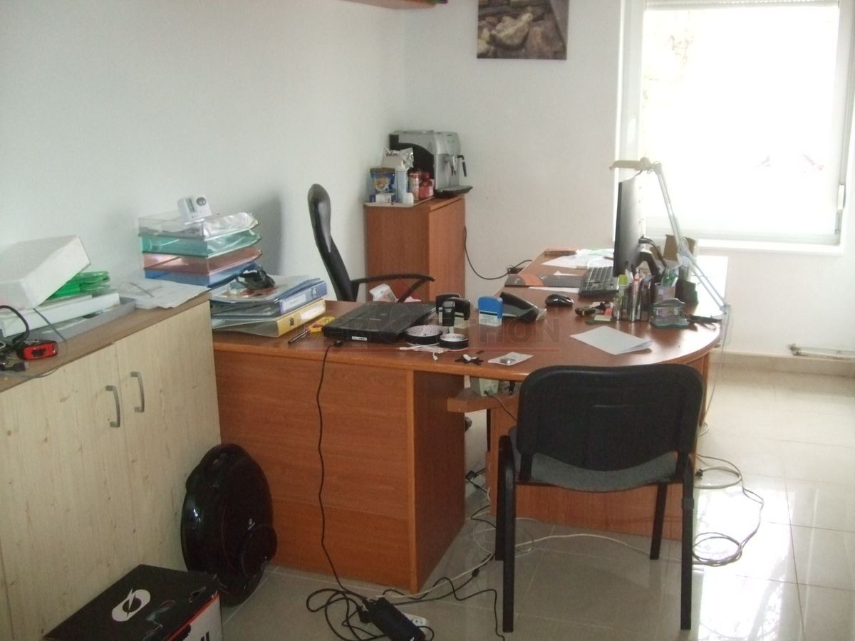 - features of the residential building: floor area of 207 m2 plus a 25 m2 terrace, built around 2000 as an addition to the original office building, single-story building with a concrete foundation, brick masonry, tile roofing, external thermal insulation and facing plaster on the walls, four rooms, dual conveniences (separate bathroom and toilet), fully equipped kitchen and spacious dining room, roofed and paved terrace at each entrance, plastic entrance doors and windows (windows with thermal insulation glazing and roller blinds), gas heating with two wall-mounted gas boilers and radiator convection system, laminate flooring in two rooms and tile flooring in the others