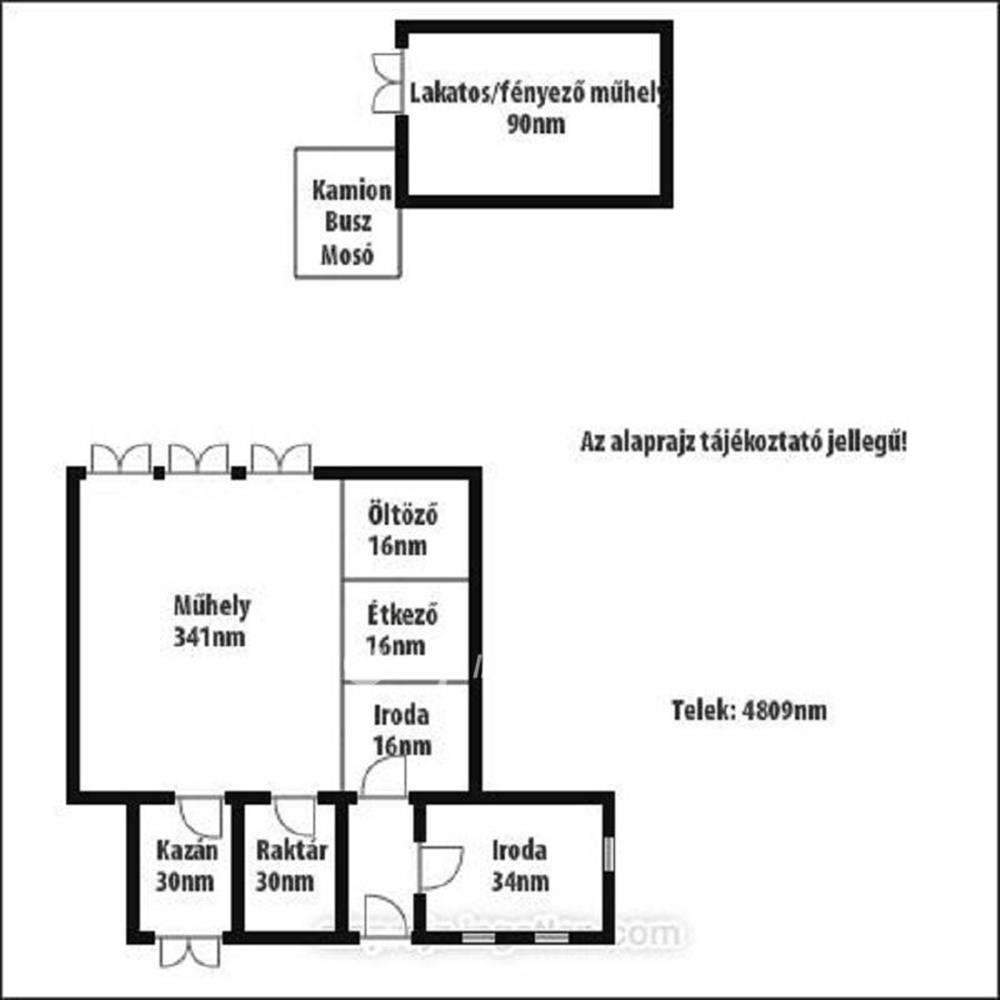 - 340 m2 műhely.