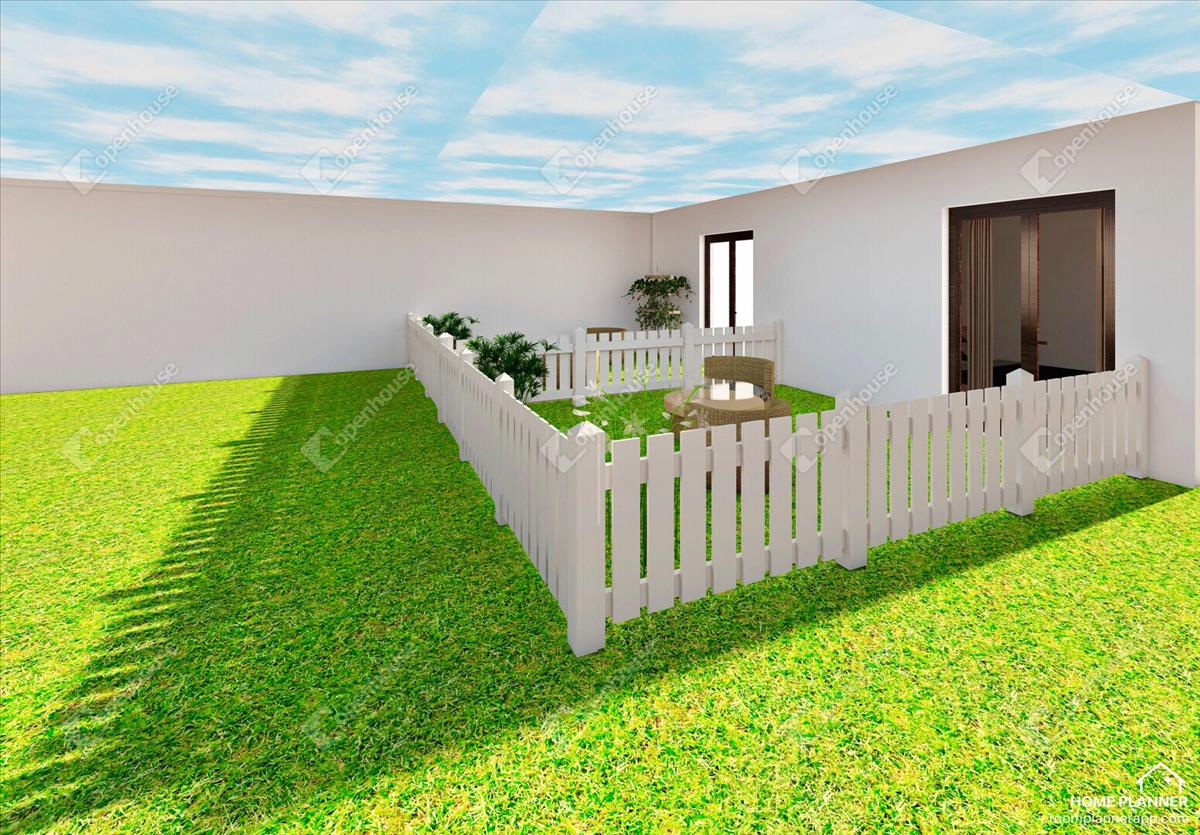 Füvesített és parkosított udvar, melyben elhelyezésre kerül egy esővíz-gyűjtő rendszer, ami a zöldterület