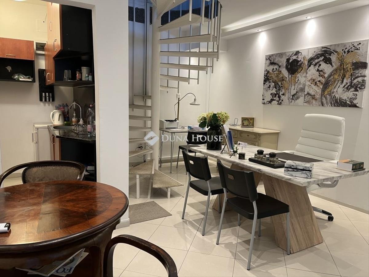 Az iroda alapterülete 60 m2, alsó szintje jelenleg irodának van kialakítva 3 munkaállomással, tárgyalósarokkal, továbbá konyha helyiséggel és mosdóval. a felső szintre egy fém csigalépcső vezet fel, ahol egy kifejezetten tágas, napfényes tárgyalóba érkezünk, mely sokszereplős tárgyalásokra is alkalmas bútorral van berendezve. Szintén a felső szinten külön nyíló ajtóval került kialakításra egy jól használható raktár/tároló helyiség, amelyet jelenlegi tulajdonosa polcokkal berendezve, iratok tárolására használ. Az irodaházban központi hűtő- fűtő rendszer van. Az iroda saját villany- és vízórával rendelkezik, az alsó és a felső szinten is saját hűtő-fűtő klíma segítségével temperálható.