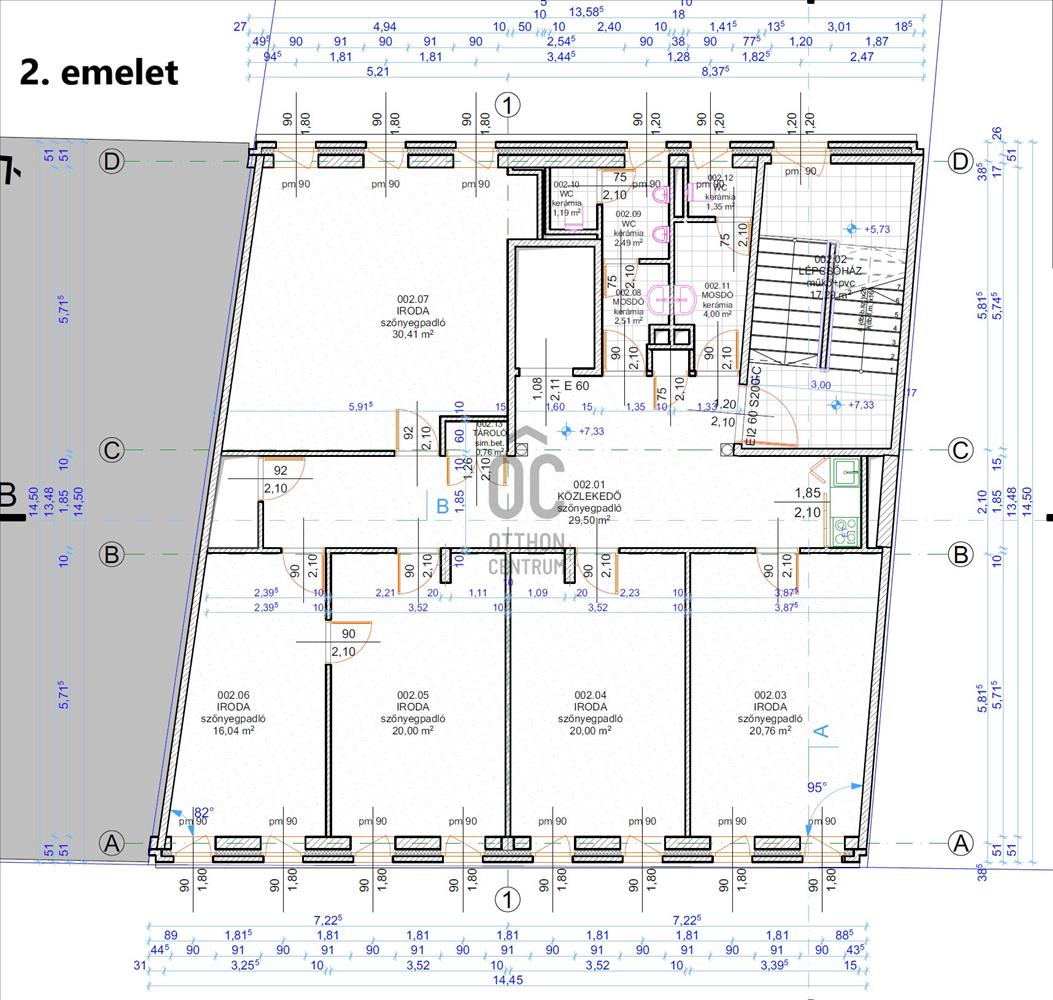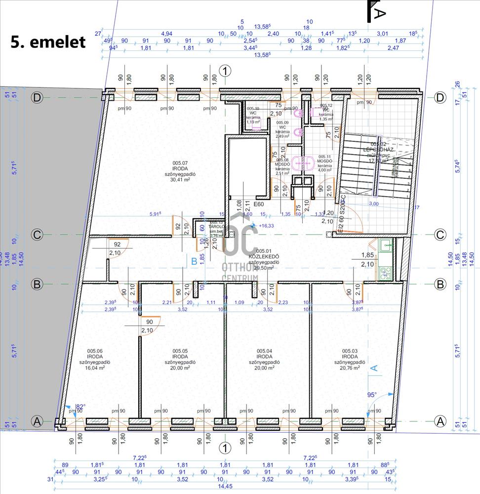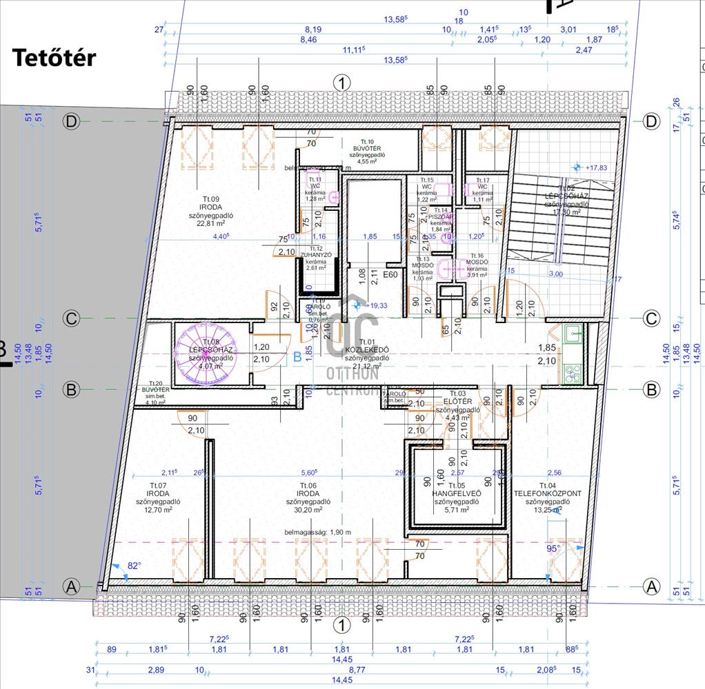 Az ingatlan egy 1400 m2-es, pince + földszint + 5 emelet + tetőtér szintszámú irodaház, mely a '80-as évek végén épült. a szabályozási terv szerint magasabb épület nem építhető, így az ingatlan megtartása javasolt.