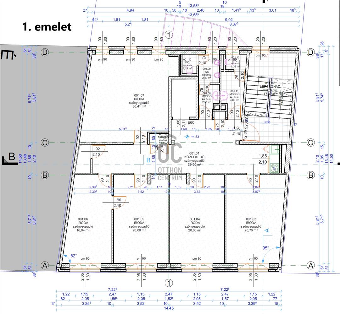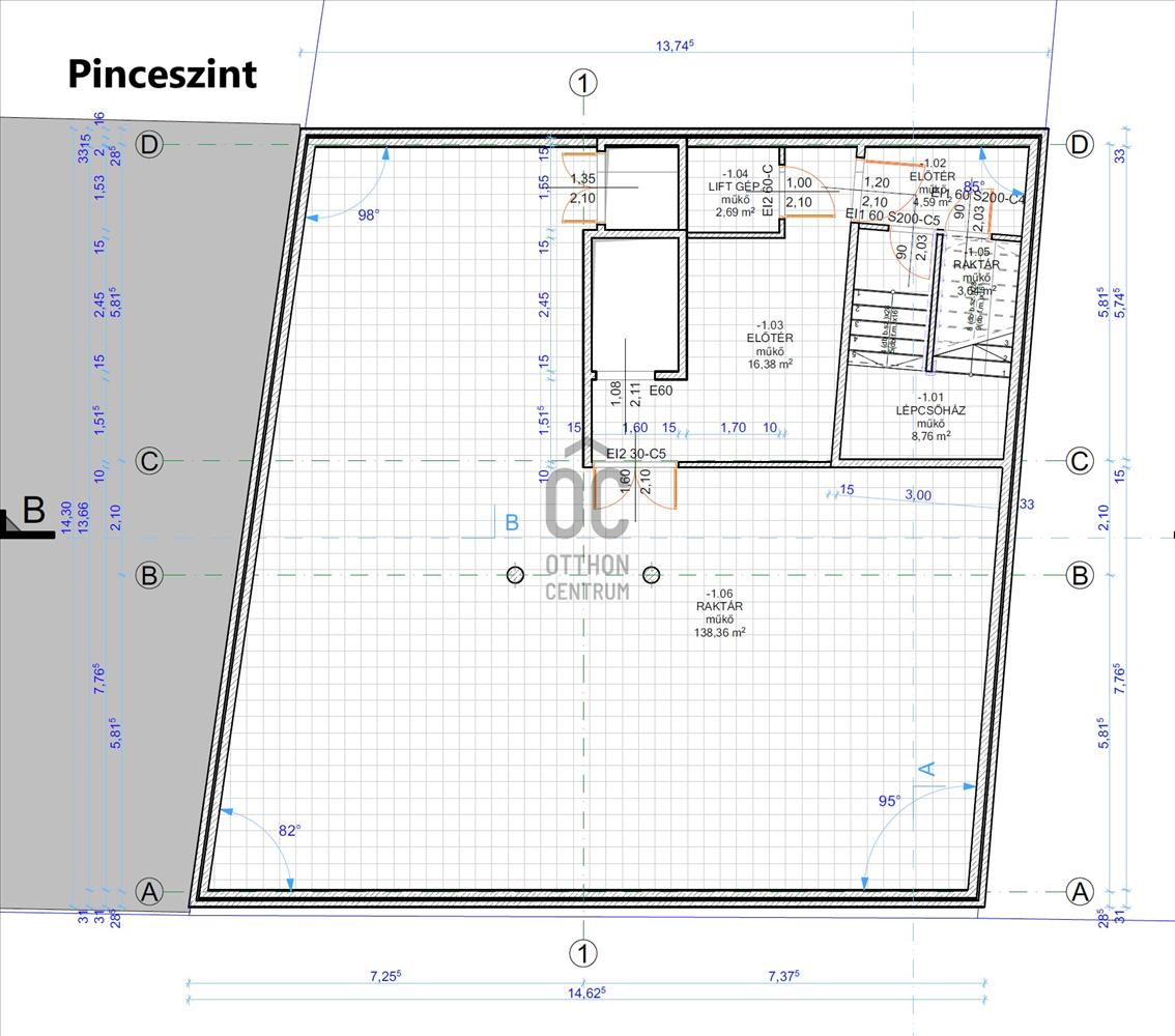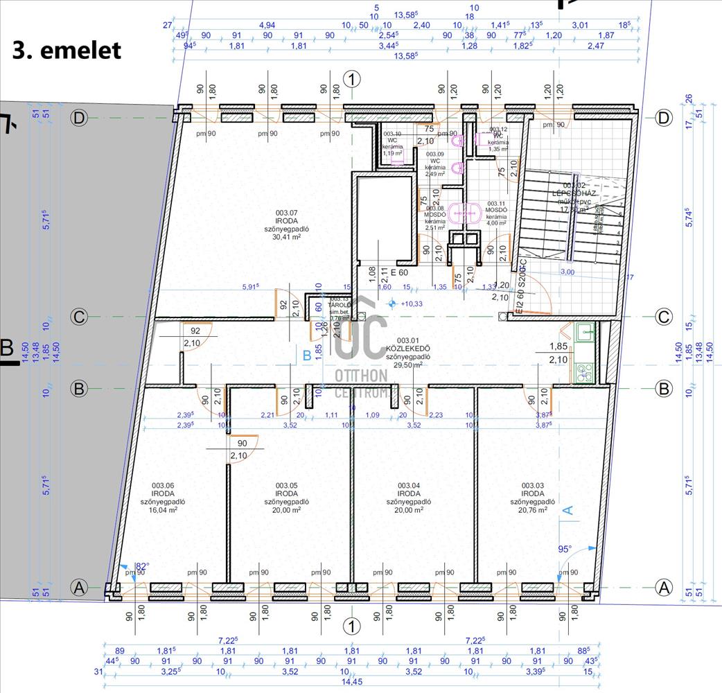 Az ingatlan egy 1400 m2-es, pince + földszint + 5 emelet + tetőtér szintszámú irodaház, mely a '80-as évek végén épült. a szabályozási terv szerint magasabb épület nem építhető, így az ingatlan megtartása javasolt.
