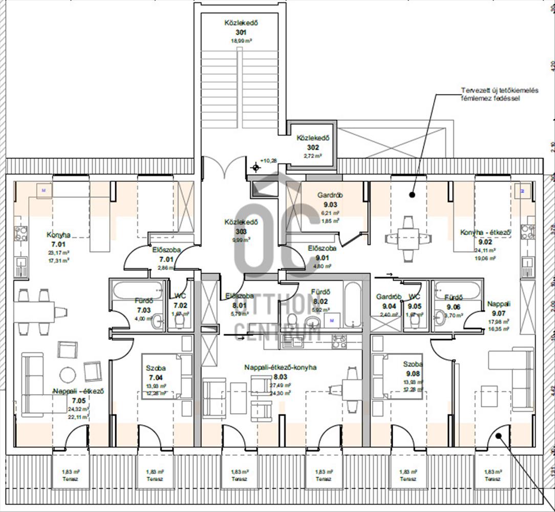 Hasznosítási javaslat: Társasház, garázzsal, tárolókkal - Építési osztály 9-11 lakásra ad engedélyt