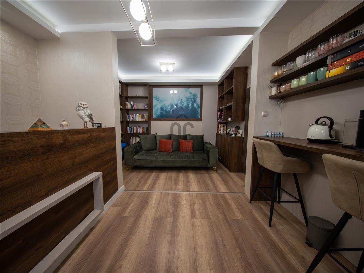 Az iroda mind a három helyisége világos, tágas, és a beépített bútorok, valamint szekrények révén praktikus megoldásokat kínál a mindennapi munkafolyamatokhoz.