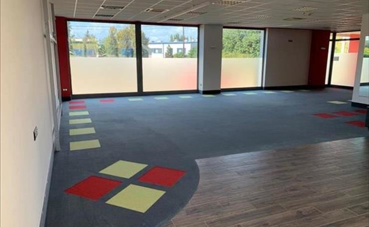 Az üzlethelyiség két bejárattal rendelkezik az egyik közvetlenül az utcafrontról (nem kell az irodaház lépcsőházába bemenni, ahhoz, hogy bejussunk az ingatlanba), a másik bejárat pedig a parkoló felől helyezkedik el.