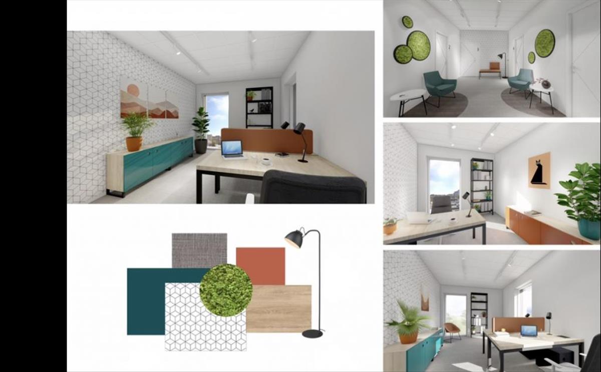 A II. Szinten 5 db külön bejáratú irodahelyiség került kialakításra, közös használatú váróterem, teakonyha, mosókonyha, férfi-női mosdó áll a bérlők rendelkezésére.