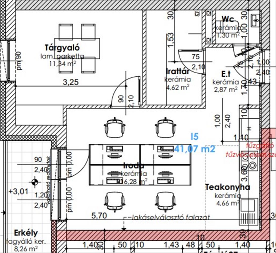 - 41, 07 m2 nettó alapterületű 1. emeleti iroda