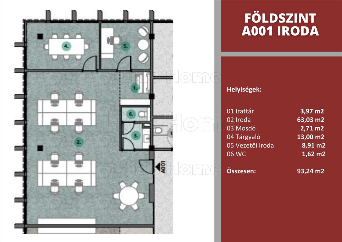 A001 jelű iroda jellemzői: