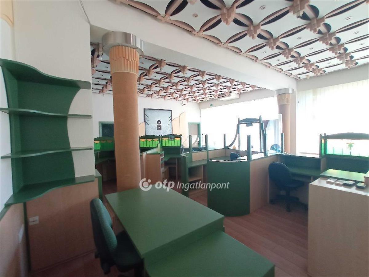 Kecskemét belvárosi társasházban, 277 m2-es, korábban bankfiókként üzemelt iroda eladó. a tégleépítésű ház földszintjén, közvetlenűl utcafrontról megközelíthető. a külső nyílászárók fából készültek, kirakatszerű kialakítása alapján reklámfeliratokat, hírdetéseket helyezhetnek el. Távfűtéssel rendelkezik, klimatizált, több egyedi klíma biztosítja a megfelelő hőmérsékletet a kiszolgáló térben. 3 X 50 a elekktromos teljesítménye lehetővé tesz vendéglátó, kereskedelmi, magánegészségügyi tevékenységet is. Korábbi teljes berendezése az ár részét képezi, szociális blokkjának kialaktása, teakonyha, fürdő, nagyobb létszámú üzleti vállalkozásnak is megfelel. a társasház előtti nagy mennyiségű parkoló miatt megközelítése gépkocsival is ideális.