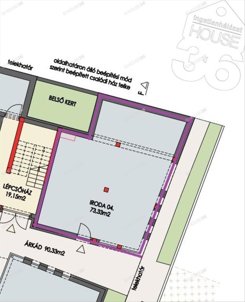 Az épület földszintjén 73, 33 m2 alapterületű iroda, üzlet megvásárolható.