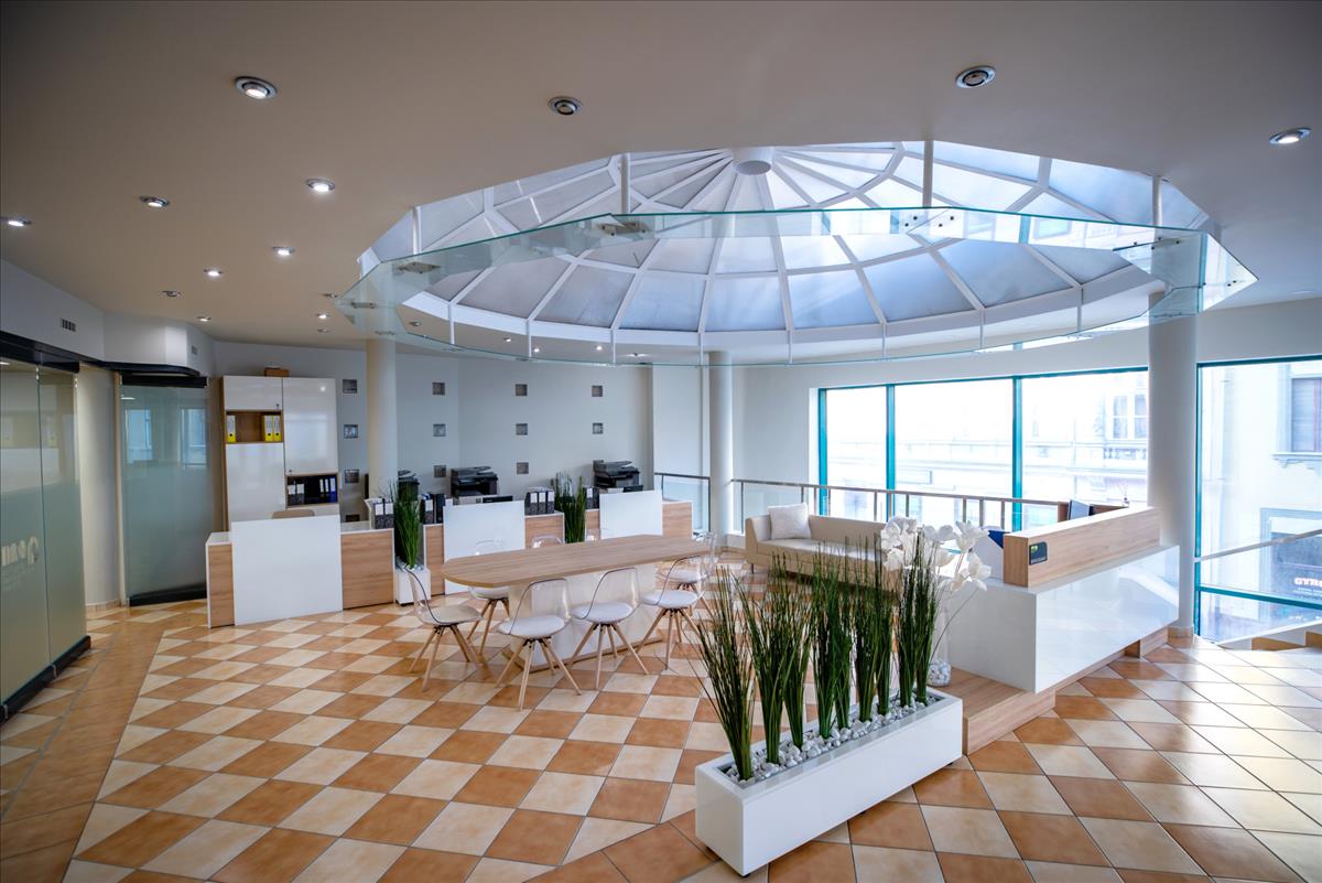 Hatalmas üvegfelületeinek köszönhetően egész nap világosban dolgozhatnak az itt tevékenykedők.