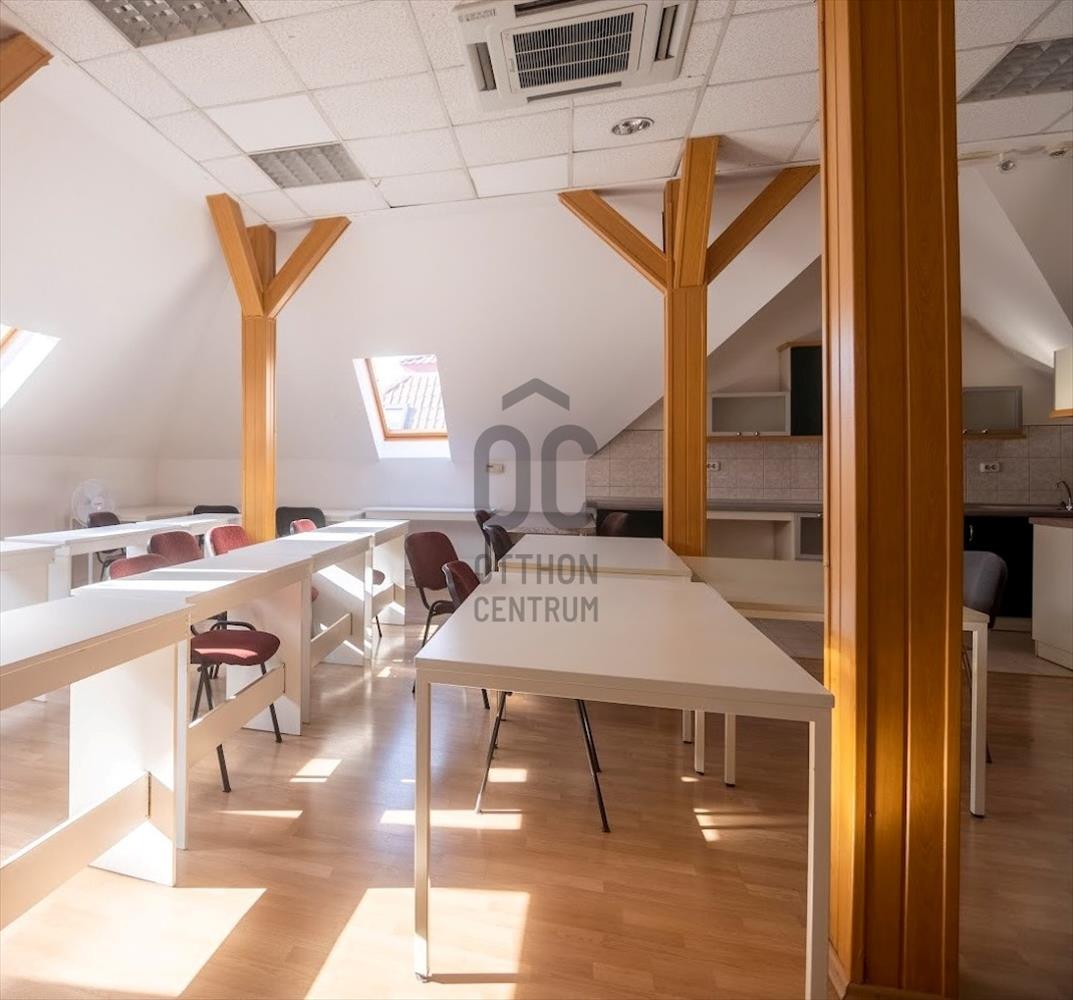 - a második emeleti szinten egy 100m2-es lakás található, önálló bejárat, fűtésrendszer, áramellátás. Amerikai konyhás kialakítás, 2 szoba. Nagy méretű fürdőszoba. Jelenleg nincs hasznosítva, mivel belvárosi, gyorsan bérbe adható.