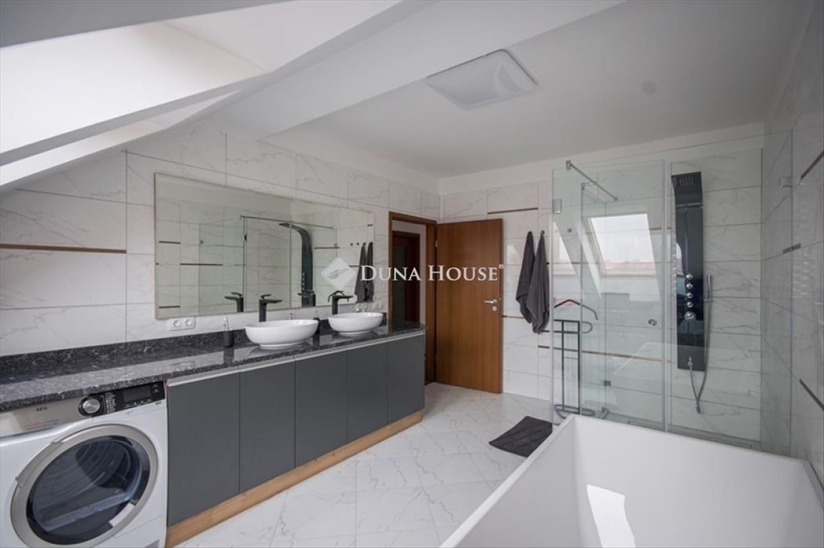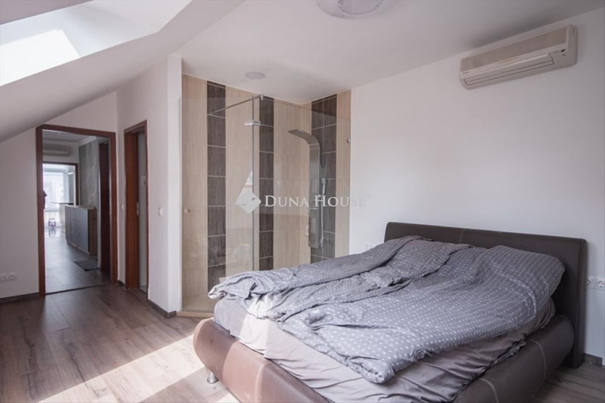 A 2. Szint nettó 145 m2, mely egy nyugati tájolású, 11 m2-es erkéllyel egészül ki. Itt egy 41 m2-es nappali, 3 hálószoba, konyha-étkező, gardrób, közlekedők és vizes helyiségek találhatók. Gázkazán és padló fűtéses, minden szobában klíma is van. Ideális lakhatásra, irodai, szolgáltatói célra.