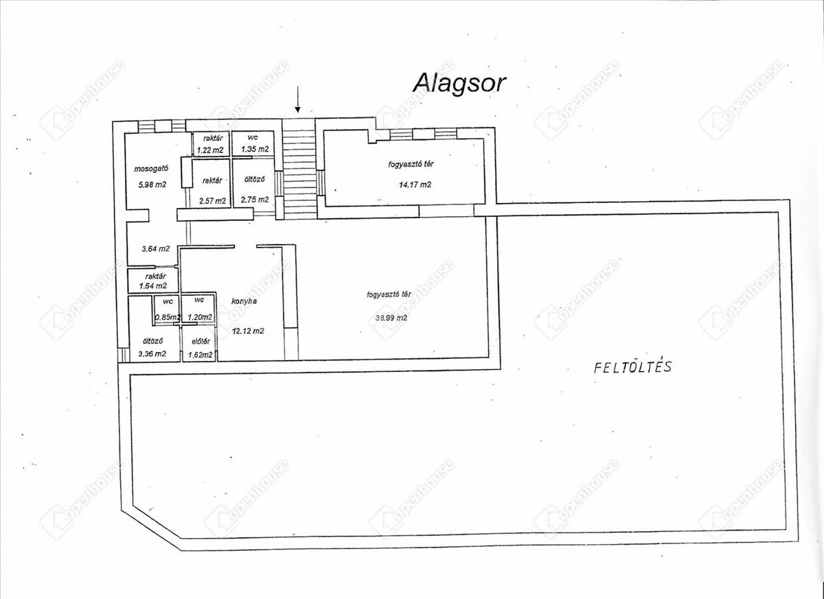 Az alagsorban egy vendéglátásra alkalmas 91 m²-es üzlethelyiség található!