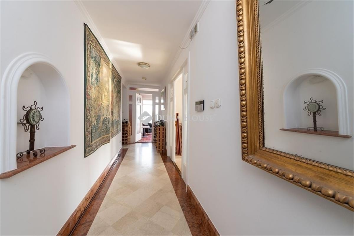 Budaliget közkedvelt részén, panorámás, medencés, három generációs VILLA! ! Budapest II kerület Budaliget városrészben, a Francia iskola közelében, a Remetehegy oldalában teraszosan beépített telken, az 1990-es években klasszikus stílusban épült, kitűnően karbantartott, a Pilisi hegyekre örök panorámás villaépület eladó. Az épület nettó 507 m2, bruttó 650 nm alapterületű 4+2 (tetőtér, gépház) szintes, a hozzá tartozó telek 660 m2 (19mx 35m, ). a villaépület tagozódása a következő:Az utca szinten levő előkertből nyíló földszinten található a bejárat, közlekedő, egy dolgozószoba, egy hálószoba, fürdőszoba és külön WC-mosdó, egyszalon és egy könyvtárszoba erkéllyel. Gyönyörű faragott fa lépcső köti össze a ház É-Ny-i sarkában a teljesen szeparálható emeleteket. a földszinttől egy szinttel lejjebb található az 5 állásos garázs, a kazánház, egy előszoba, egy nappali étkező, egy konyha, egy vendég hálószoba, fürdőszoba és külön WC/mosdó. Egy szinttel még lejjebb a kert szinten wellness részleg: fűtött vízforgatós, ellenáramoltatóval felszerelt 10mx4m medence (alatta gépház szint), öltöző, tároló és fürdőszoba, teljes szélességében eltolható üvegajtókkal megnyitva a hangulatos, napos, szépen gondozott, magas tujákkal körbevett kertre. a ház teraszosan a hegyoldalra simuló beton oldala, dupla szigetelést kapott. Az emeleten Miele gépekkel felszerelt konyha étkezővel, nappali panorámás erkéllyel, három hálószoba, egy Ravak sarokkádas fürdőszoba, külön WC-mosdó. a jelenleg nem használt, Velux tetőtéri ablakokkal, víz-, és elektromos kiállással ellátott kb. 90 m2 (1. 5 M feletti terület) tetőtér beépíthető. a ház körbenapozott, elegáns állítható fa zsalugáter ajtók és reluxák védik a naptól. Az épületben egyedi tervezésű, rendkívül dekoratív finn vörösfenyő ablakok és nyílászárók kerültek beépítésre. Mindkét konyha beépített bútorokkal, tűzhellyel, elszívóval, mosogatógéppel és hűtővel felszerelt. a hálószobákban és egyéb helyiségekben beépített szekrénye segíti a tárolást. a ház nagy részében padlófűtés van, míg a hálószobákban radiátorok biztosítják a meleget. a helyiségek burkolata funkciójuknak megfelelően változatos, faparketta, szalagparketta, kő, csempe és szőnyegpadló egyaránt megtalálható. a teraszok kültéri járólappal burkoltak. a házban továbbá központi porszívó, kiépített vízlágyító rendszer, kiépített riasztó és wi-fi rendszer került beépítésre. a kert parkosított, öntözőrendszerrel ellátott. Az ingatlanban elektromos kapu és elektromos garázsajtó üzemel. Közlekedése kiváló, a Hűvösvölgyi villamos végállomás és p+r 5 perc alatt, SzéllKálmán tér 25 perc alatt elérhető. Buszmegálló 5 perc séta. Hüvi Bevásárlóközpont, LIDL, SPAR, , TECO-Express, posta, gyógyszertár, óvodák, bölcsődék, iskolák mind megtalálhatók a közelben. Csendes, nyugodt zöldövezet, távol a város zajától, de mégis közel mindenhez. Az ingatlan kitűnő elhelyezkedése végett kiváló befektetés, a szintek szeparálhatósága miatt pedig kiválóan alkalmas több generációnak és követségei rezidenciának is. In Budapest II district, Budaliget area, near the French school, on a terraced plot onthe side of Remete Hill, a well-maintained villa, built in classical style in the 1990s, with an eternal panoramic view of the Pilisi Mountains is for sale. The building has a net floor area of 507 m2 (without the attic and engine room), agross floor area of 650 m2, 4 + 2 (attic, engine room) floors, the plot is 660 m2 (19mx35m, ). The division of the building is as follows: On the ground floor, which opens from the front garden on the street level, there isan entrance, a corridor, a study, a bedroom, a bathroom and a separate toilet, alounge and a library room with a balcony. a beautiful carved wooden staircaseconnects the fully separable floors in the north-west corner of the house. One level below the ground floor is the 5-car garage, the boiler room, an entrancehall, a living-dining room, a kitchen, a guest bedroom, a bathroom and a separatetoilet / sink. One level further down on the garden level wellness area: heated, circulating, counter-current equipped 10mx4m pool (with engine room a further level down), dressing room, storage and bathroom, opening with full width sliding glass doors ontothe cosy, sunny, well-kept garden surrounded by high thuja bushes for privacy. Theterraced house rolls down on the hillside built on a concrete base with doubleinsulation. Upstairs Miele kitchen with dining area, living room with panoramic balcony, threebedrooms, a bathroom with Ravak corner bath, separate toilet. The currently unused approx. 90m2 attic with fitted Velux attic-windows, water andelectric outlet, needs internal cladding. The house is very bright, surrounded by elegant adjustable wooden shutter doorsand blinds to protect from the sun. The building has uniquely designed, highlydecorative Finnish larch windows and doors. Both kitchens have built-in furniture, a stove, extractor, dishwasher and refrigerator. Built-in wardrobes in bedrooms and other rooms help with storage. Most of the house has underfloor heating, while the bedrooms have radiators. Thefloor covering of the rooms is varied according to their function, wood parquet, stripparquet, stone, tile and carpet floor can all be found. The terraces are covered withoutdoor tiles. The house also has a central vacuum cleaner, a built-in water softening system, analarm and a wi-fi system. The garden is landscaped and equipped with an irrigationsystem. The property has an electric gate and an electric garage door. Great transport: Hűvösvölgy tram terminal and P + R can be reached in 5 minutes, Széll Kálmán square in 25 minutes. Bus stop 5 minutes walk. H