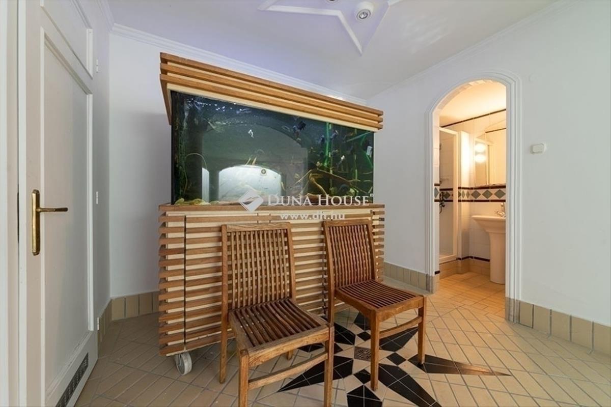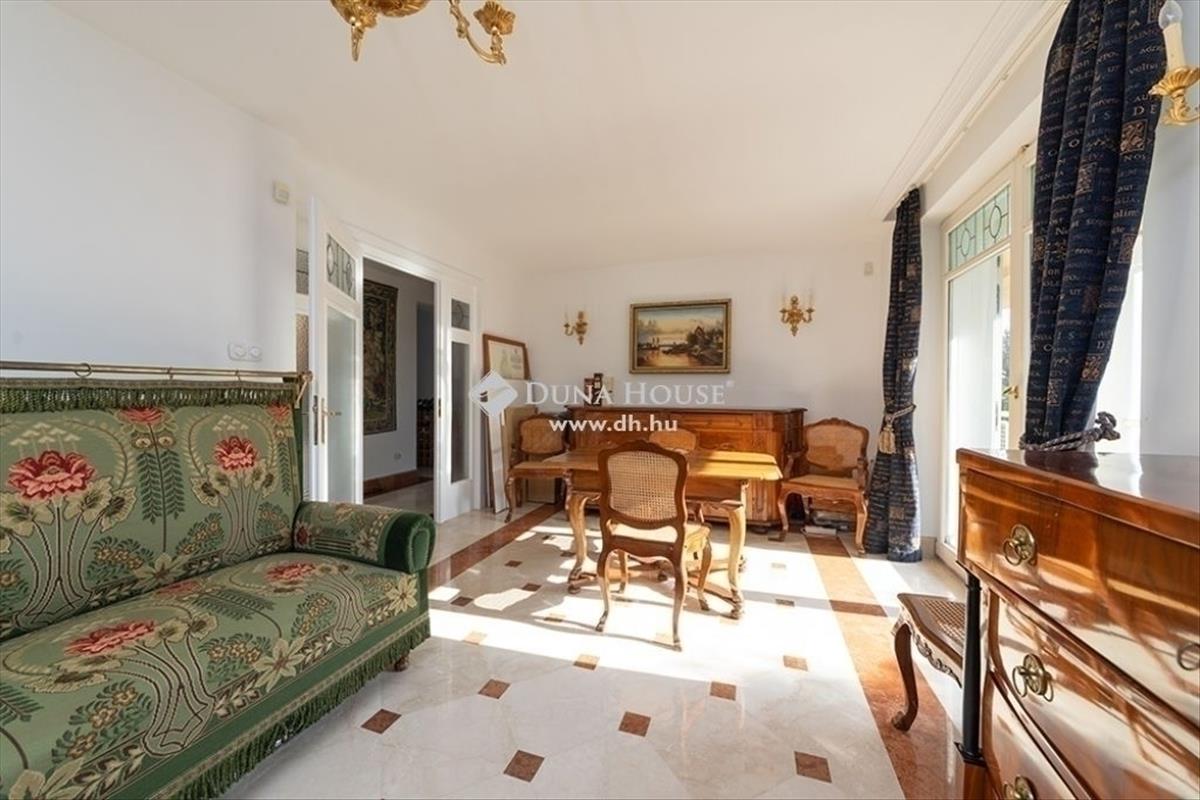 Csendes, nyugodt zöldövezet, távol a város zajától, de mégis közel mindenhez. Az ingatlan kitűnő elhelyezkedése végett kiváló befektetés, a szintek szeparálhatósága miatt pedig kiválóan alkalmas több generációnak és követségei rezidenciának is. In Budapest II district, Budaliget area, near the French school, on a terraced plot onthe side of Remete Hill, a well-maintained villa, built in classical style in the 1990s, with an eternal panoramic view of the Pilisi Mountains is for sale. The building has a net floor area of 507 m2 (without the attic and engine room), agross floor area of 650 m2, 4 + 2 (attic, engine room) floors, the plot is 660 m2 (19mx35m, ). The division of the building is as follows: On the ground floor, which opens from the front garden on the street level, there isan entrance, a corridor, a study, a bedroom, a bathroom and a separate toilet, alounge and a library room with a balcony. a beautiful carved wooden staircaseconnects the fully separable floors in the north-west corner of the house. One level below the ground floor is the 5-car garage, the boiler room, an entrancehall, a living-dining room, a kitchen, a guest bedroom, a bathroom and a separatetoilet / sink. One level further down on the garden level wellness area: heated, circulating, counter-current equipped 10mx4m pool (with engine room a further level down), dressing room, storage and bathroom, opening with full width sliding glass doors ontothe cosy, sunny, well-kept garden surrounded by high thuja bushes for privacy. Theterraced house rolls down on the hillside built on a concrete base with doubleinsulation. Upstairs Miele kitchen with dining area, living room with panoramic balcony, threebedrooms, a bathroom with Ravak corner bath, separate toilet. The currently unused approx. 90m2 attic with fitted Velux attic-windows, water andelectric outlet, needs internal cladding. The house is very bright, surrounded by elegant adjustable wooden shutter doorsand blinds to protect from the sun. The building has uniquely designed, highlydecorative Finnish larch windows and doors. Both kitchens have built-in furniture, a stove, extractor, dishwasher and refrigerator. Built-in wardrobes in bedrooms and other rooms help with storage. Most of the house has underfloor heating, while the bedrooms have radiators. Thefloor covering of the rooms is varied according to their function, wood parquet, stripparquet, stone, tile and carpet floor can all be found. The terraces are covered withoutdoor tiles. The house also has a central vacuum cleaner, a built-in water softening system, analarm and a wi-fi system. The garden is landscaped and equipped with an irrigationsystem. The property has an electric gate and an electric garage door. Great transport: Hűvösvölgy tram terminal and P + R can be reached in 5 minutes, Széll Kálmán square in 25 minutes. Bus stop 5 minutes walk. Hüvi Shopping Center, LIDL, spar, , TECO-Express, post office, pharmacy, kindergartens, nurseries, schools can all be found nearby. Quiet, calm suburban area. The property is goodinvestment due to its excellent location, and well separable floors, it is suitable forseveral generations, or as a residence for embassies.