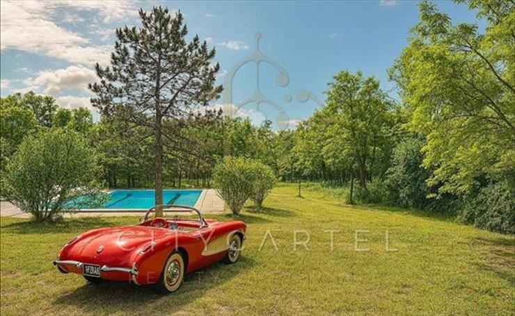 A villa keleti teraszát szinte öleli a napfény. a dombtetőről a tekintet aranyló gabonatáblákon és zöld erdősávokon siklik végig. Bent a nappaliban a fény és árnyék lassú táncot jár a falakon, a konyhából friss kenyér illata terül szét. a pince mélyén sorakozó borospalackok és a biliárdasztal mellett függő lámpa egy nyugodtabb korszak hangulatát idézi.