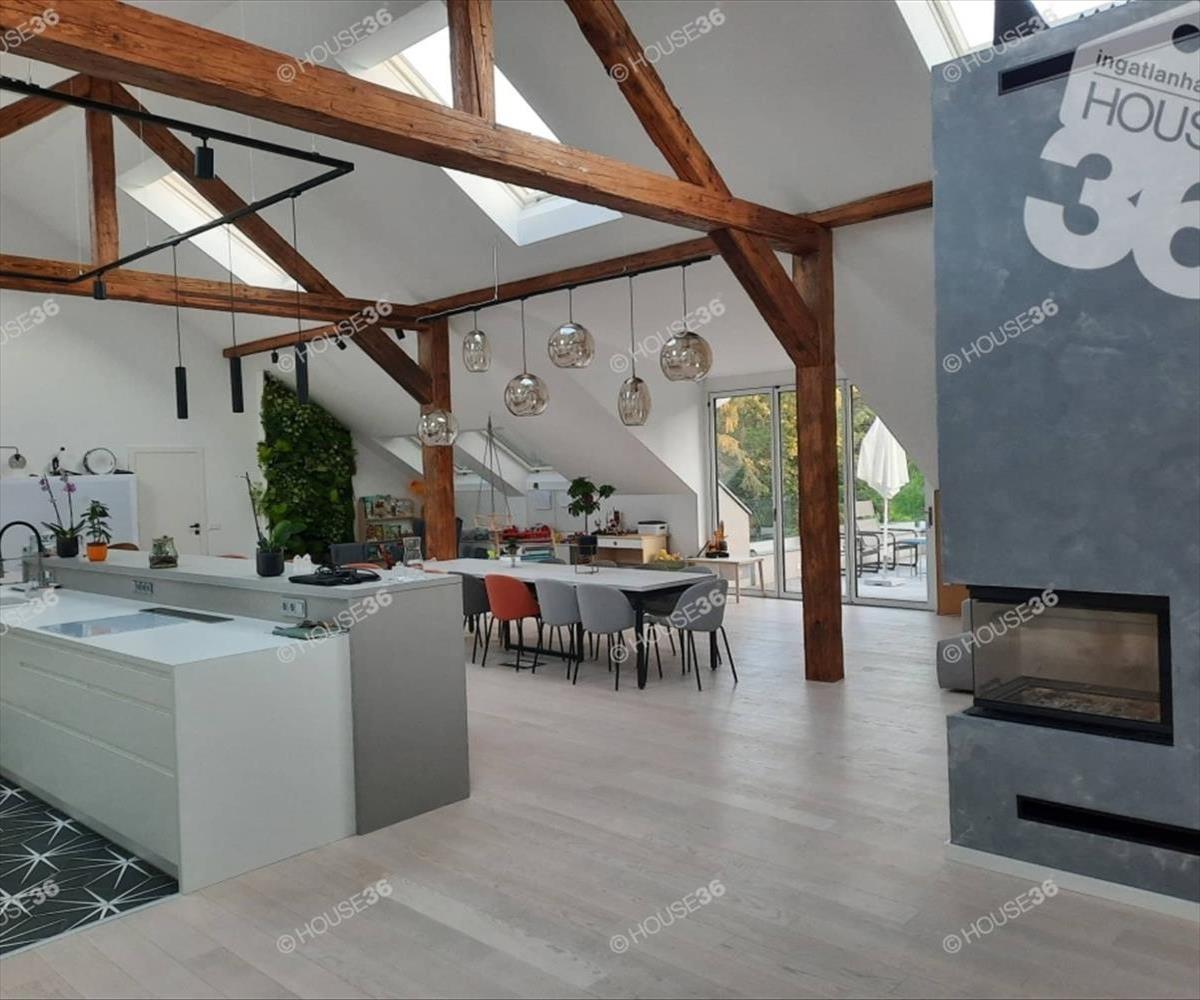 A rendkívül robosztus födém acél szerkezettel való megerősítését követően kialakításra került egy impozáns, első emeleten elhelyezkedő tágas luxus lakrész. Az elrendezés meghatározó központi elemét képezi a 130 négyzetméteres, legmagasabb pontján 7,5 méter belmagassággal rendelkező nappali. a helyiségbe belépve azonnal szembe ötlik a részben látszó gerendás tetőszerkezet és a központi helyet elfoglaló étkező asztal. Szemközt bal oldalon 30 négyzetméteres játszó sarok, vele átellenben felnőtteknek felhőtlen szórakozásra kialakított terület található.