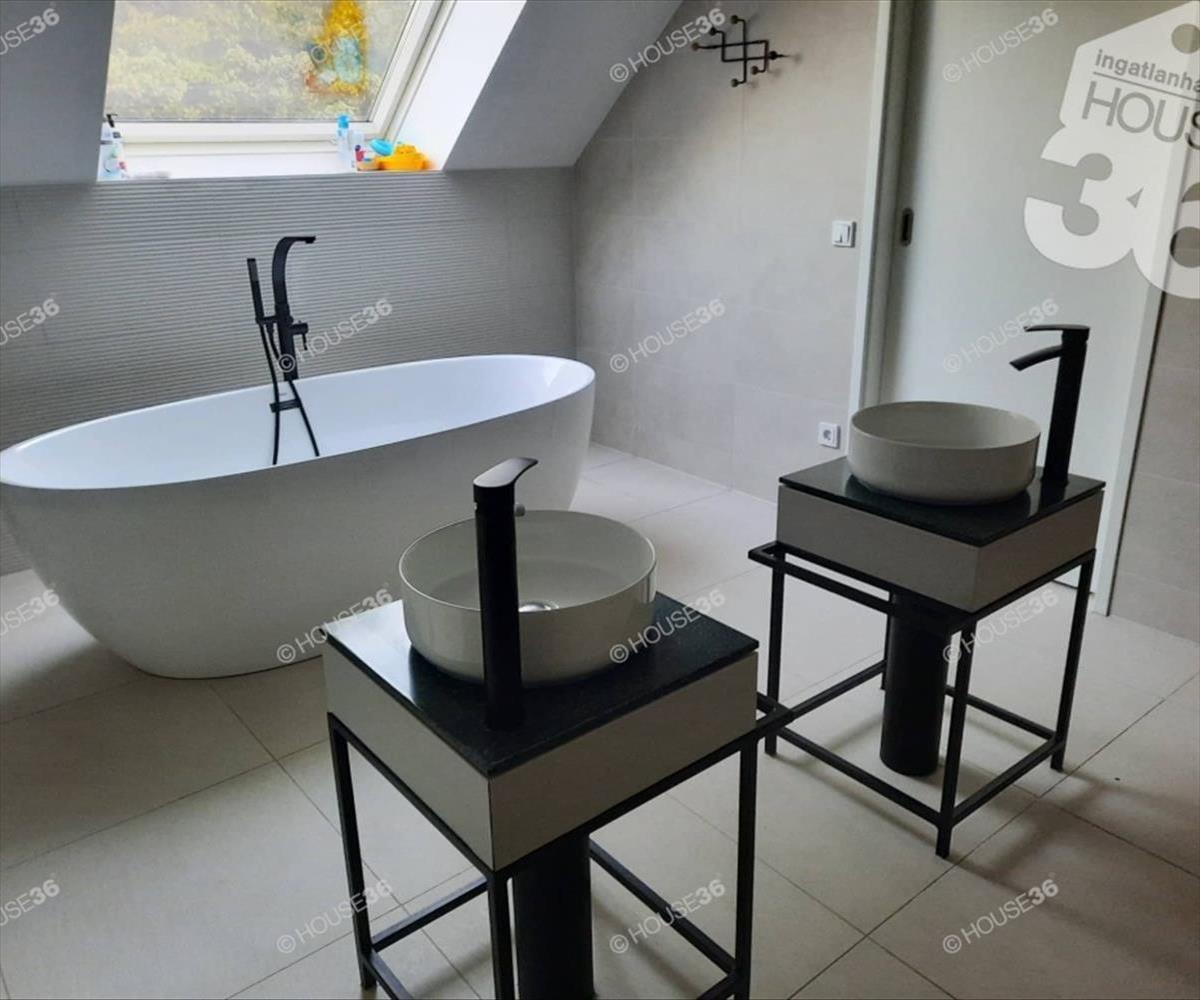Két darab átlagos nappali méretű fürdő, és ezekkel közvetlen kapcsolatban álló lakószobák foglalnak helyet az épület két oldalán.