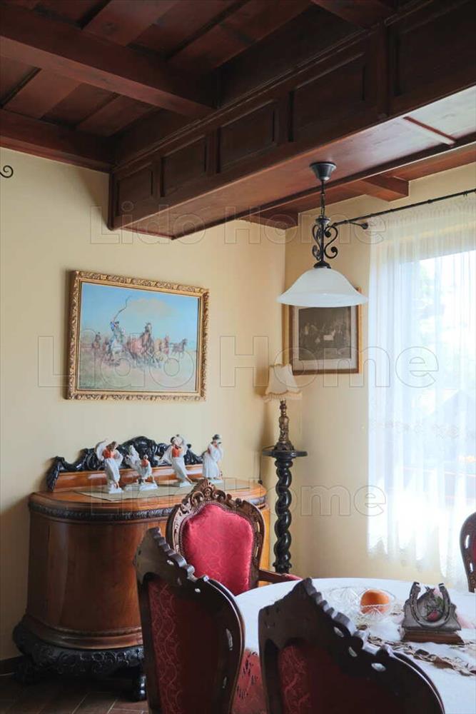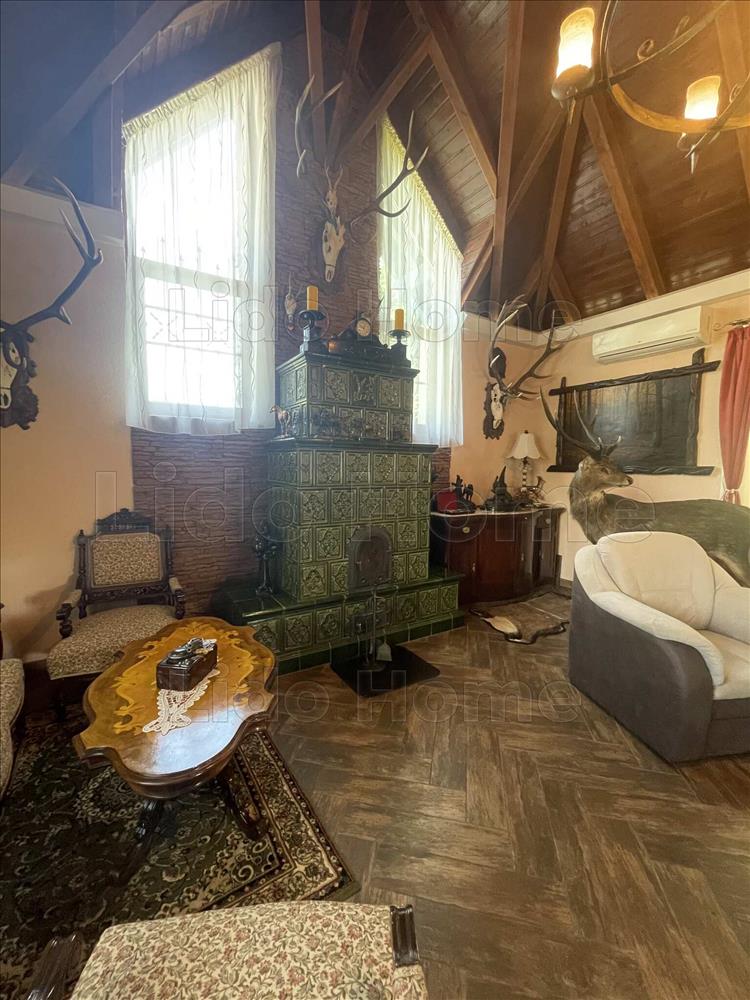 -Földszint (120 m²): hatalmas, fagerendás nappali cserépkályhával, elegáns előcsarnok, vendég-WC, hálószoba saját fürdőszobával, étkezővel egybenyitott, teljesen felszerelt konyha.