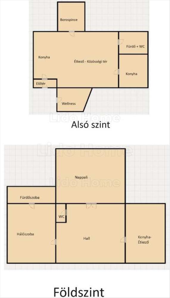 -Alsószint (100 m²): exkluzív, 20–30 fő befogadására alkalmas borozó (bárpult, kandalló, fürdő, előkészítő konyha) borospincével, valamint egy grillezővel kiegészített hangulatos kiülő is kapcsolódik hozzá.