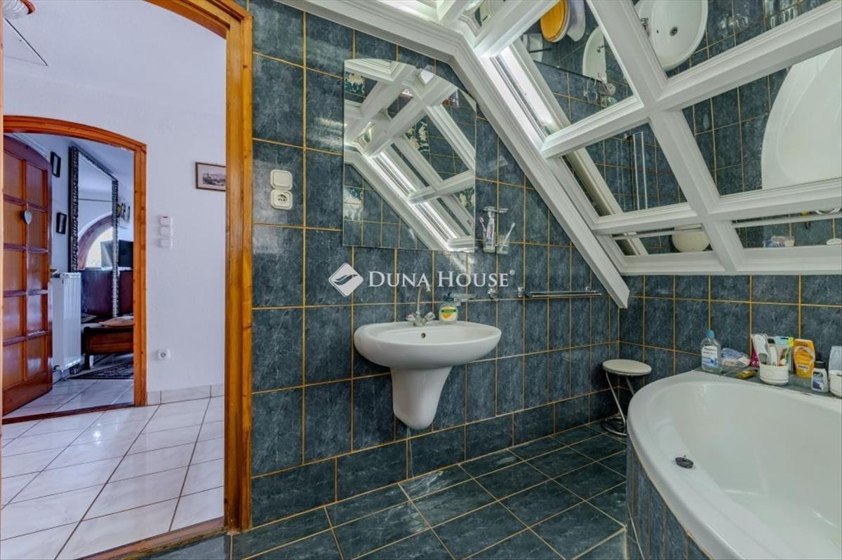 Eladó kúria Szentendrén, erdő szélén, patak partjánSzentendre egyik legszebb részén, zsákutcában, az erdő szélén, patakparton, a Dunaparti sétányhoz közel kínáljuk eladásra ezt a különleges hangulatú, háromszintes kúriaépületet. a közel 800 m2-es ősfás telken elhelyezkedő ingatlan növényektől védve, intim környezetben van. Az 1995-ben épült, 220 m2-es, oszlopos homlokzatú kúria klasszikus eleganciát és otthonos kényelmet ötvöz. a ház minden részletében érezhető a minőség és a gondos tervezés: gyönyörű boltíves nyílászárók, impozáns oszlopok és tágas terek jellemzik. a ház dupla szigetelést kapott. Impozáns bejáratánál 3 db kétszárnyú boltíves ajtó található, így lépünk be a szalonba, mely nappaliként funkcionál. a nappali dísze egy csodálatos fatüzelésű kandalló. Az alsó szinten egy nagy nappali található kandallóval, étkezővel és konyhával, valamint egy fürdőszoba. Az emeleten három hálószoba, egy gardrób, egy fürdőszoba, valamint egy nagy, panorámás loggia kapott helyet, ahonnan csodás kilátás nyílik a környező természetre. a pinceszinten jelenleg garázs, szerelőakna, kazánház és tárolóhelyiségek találhatók, de kialakításra került egy fürdő/háztartási helyiség is, így akár önálló lakrész is létrehozható ideális két generáció együttélésére. a garázs bővíthető kétállásosra. a tetőtér beépíthető. a ház környezetét a természet közelsége, a friss levegő és a nyugalom jellemzi, miközben a városközpont és a Duna-part néhány perc alatt elérhető. Irányár: 149 900 000 Ft FIX 3% lakáshitelre megvehető