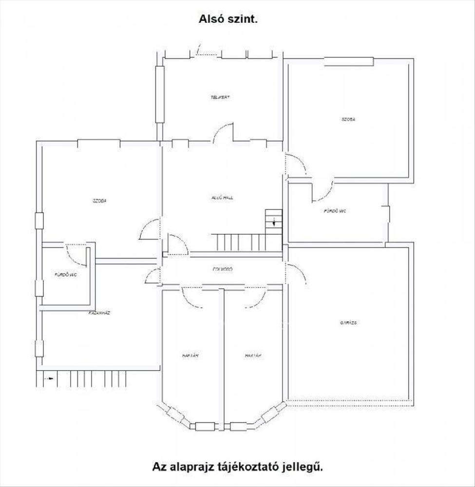 Földszint: 2 hálószoba saját fürdővel, műszaki helyiség, télikert, garázs (25, 5 nm), tárolók,