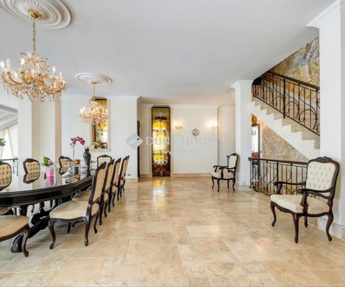 Vácon Panorámás Luxus Hotelnek Alkalmas Magánbirtok Eladó 1015 nm-es villaépülettel, 7500 négyzetméteres gyönyörűen parkosított, intim telekkel. Az egyedülálló szépségű, lenyűgöző nagyságú, és mégis ember léptékű, barátságos épület több generáció számára épült. Az előtérből belépve elénk tárul egy nagyvonalú, elegáns tér, és itt találjuk a ház egyik lelkét, a konyha-étkező-nappali 150 nm-es együttesét. Ezen a szinten kapott helyet a dolgozószoba, a két szoba a hozzá tartozó két gardróbbal, és 2 luxus fürdőszobával. a földszinti helyiségeket körbeöleli a részben fedett terasz, melyről pompázatos panoráma tárul elénk kilátással a Dunakanyarra, ahonnan kilépve feszített víztükrű medence nyújt felfrissülést. a csodálatos reggelik helyszínéül szolgáló fedett teraszról pár lépcsővel elérhető, a családi és baráti összejövetelek színhelyéül szolgáló kerti, fedett terasz grillezővel, ahonnan a kerti tó, és vadkacsa lakói adnak felhőtlen nyugalmat a ház lakói számára. Az első emeleten található közel 30 m2-es nappaliból nyílik nyolc nagy méretű szoba, két dupla fürdőszoba, és két külön wc, valamint egy 94 és egy 18 m2-es terasz nyújt otthont. a tetőtér közel 80 m2-rén, kialakításra került 2+2 fél szoba, két fürdővel, wc-vel, mely akár házvezető, és gondnok lakhatásául is kitűnően szolgál. a ház -1. Szintje a szórakozás, kikapcsolódás, feltöltődés helyszíne. a közel 100 m2-es hobbi helyiségben kialakított edzőterem mellett, találunk itt 6 személyes jacuzzit és infra szaunát.-1. Szintjén található a 77 nm-es garázs, valamint az előkertben további tíz parkolóhely várja az autókat. a ház a villanyenergiát kivéve teljesen önellátó: a fűtés eredetileg gáztartályokkal gázkazánnal és napkollektorokkal megoldott. További extra a teljes ingatlant látó kamerás térfigyelő rendszer, melyet a tulajdonos az irodából vezérelhet, ellenőrizhet.