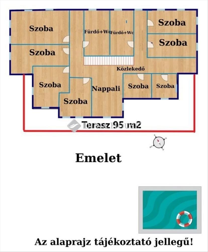 Vácon Panorámás Luxus Hotelnek Alkalmas Magánbirtok Eladó 1015 nm-es villaépülettel, 7500 négyzetméteres gyönyörűen parkosított, intim telekkel. Az egyedülálló szépségű, lenyűgöző nagyságú, és mégis ember léptékű, barátságos épület több generáció számára épült. Az előtérből belépve elénk tárul egy nagyvonalú, elegáns tér, és itt találjuk a ház egyik lelkét, a konyha-étkező-nappali 150 nm-es együttesét. Ezen a szinten kapott helyet a dolgozószoba, a két szoba a hozzá tartozó két gardróbbal, és 2 luxus fürdőszobával. a földszinti helyiségeket körbeöleli a részben fedett terasz, melyről pompázatos panoráma tárul elénk kilátással a Dunakanyarra, ahonnan kilépve feszített víztükrű medence nyújt felfrissülést. a csodálatos reggelik helyszínéül szolgáló fedett teraszról pár lépcsővel elérhető, a családi és baráti összejövetelek színhelyéül szolgáló kerti, fedett terasz grillezővel, ahonnan a kerti tó, és vadkacsa lakói adnak felhőtlen nyugalmat a ház lakói számára. Az első emeleten található közel 30 m2-es nappaliból nyílik nyolc nagy méretű szoba, két dupla fürdőszoba, és két külön wc, valamint egy 94 és egy 18 m2-es terasz nyújt otthont. a tetőtér közel 80 m2-rén, kialakításra került 2+2 fél szoba, két fürdővel, wc-vel, mely akár házvezető, és gondnok lakhatásául is kitűnően szolgál. a ház -1. Szintje a szórakozás, kikapcsolódás, feltöltődés helyszíne. a közel 100 m2-es hobbi helyiségben kialakított edzőterem mellett, találunk itt 6 személyes jacuzzit és infra szaunát. -1. Szintjén található a 77 nm-es garázs, valamint az előkertben további tíz parkolóhely várja az autókat. a ház a villanyenergiát kivéve teljesen önellátó: a fűtés eredetileg gáztartályokkal gázkazánnal és napkollektorokkal megoldott. További extra a teljes ingatlant látó kamerás térfigyelő rendszer, melyet a tulajdonos az irodából vezérelhet, ellenőrizhet. Hitel.hu - Hasonlítsa össze a bankok lakáshitel ajánlatait