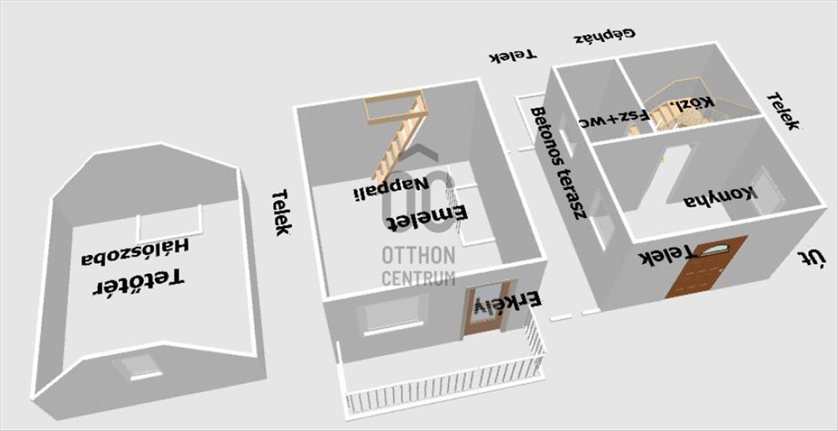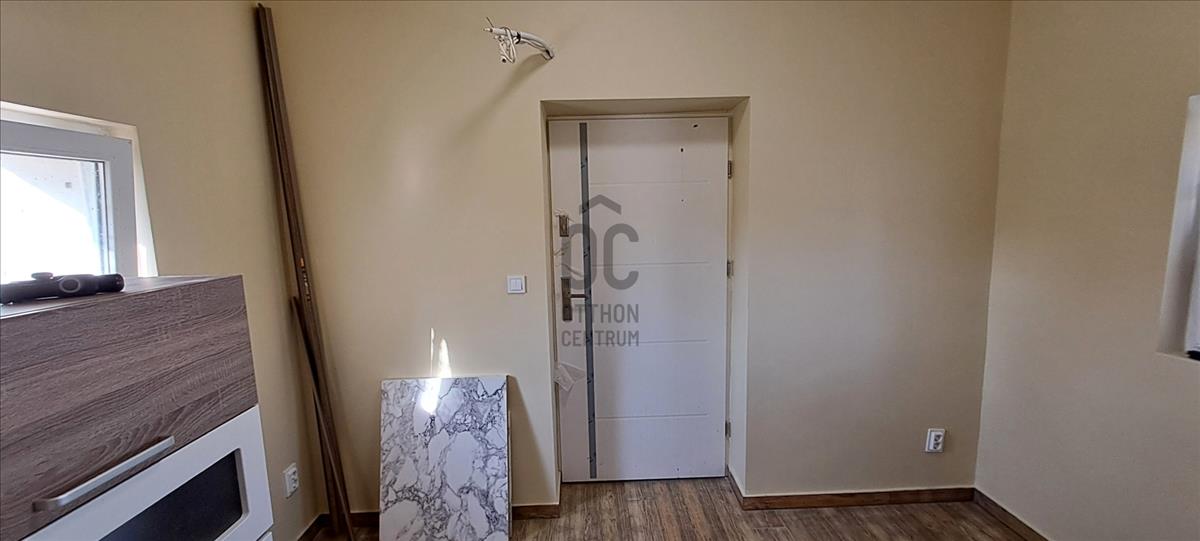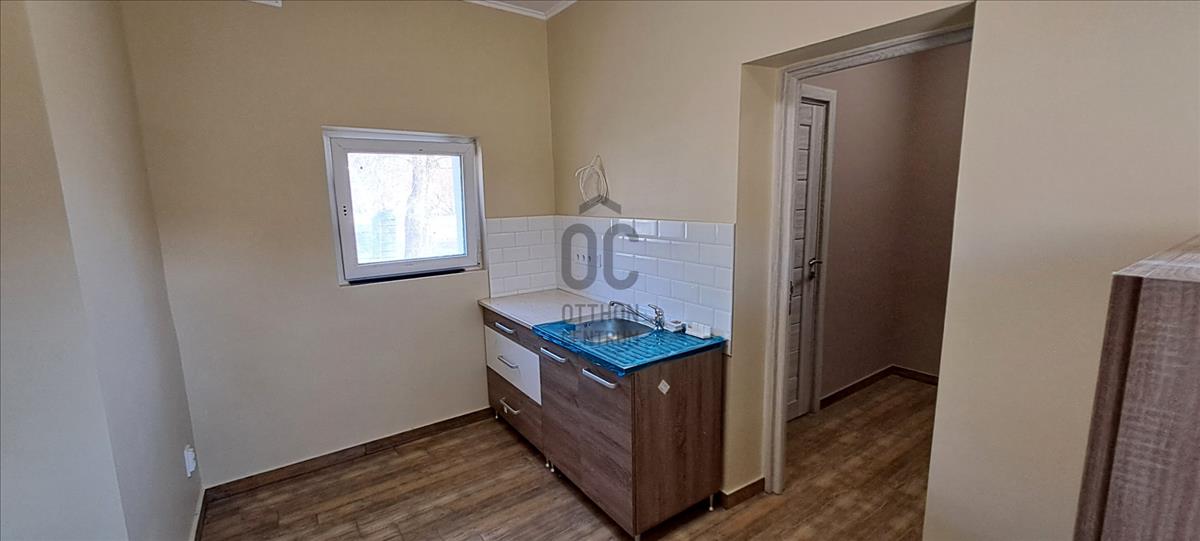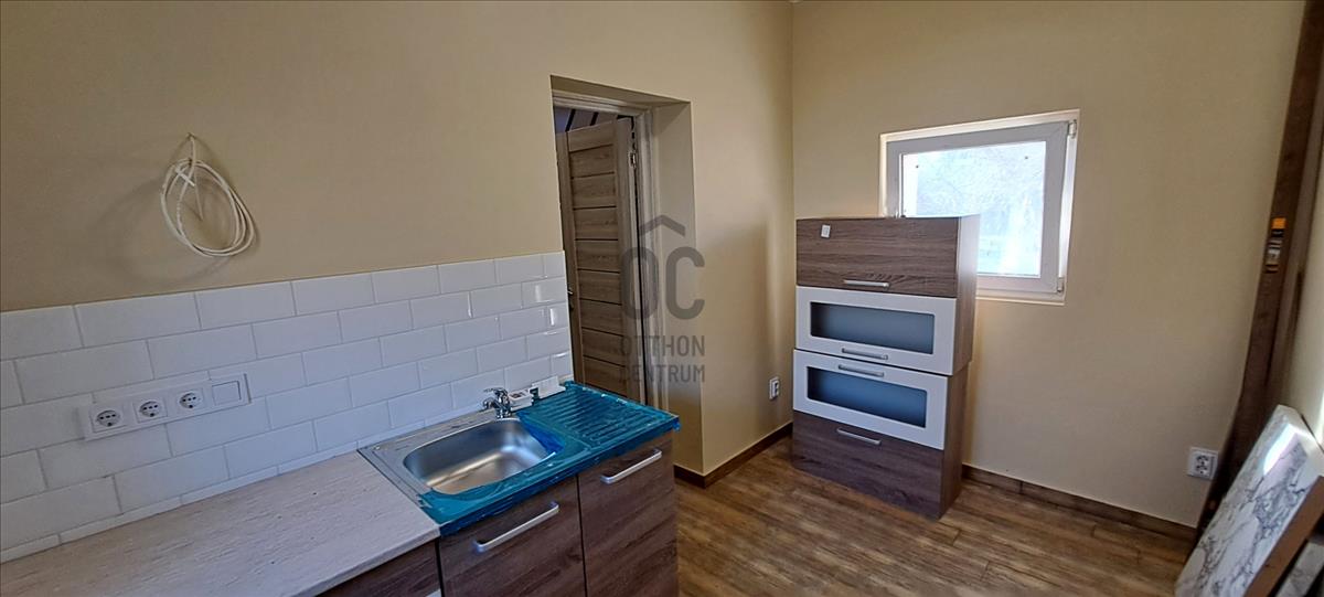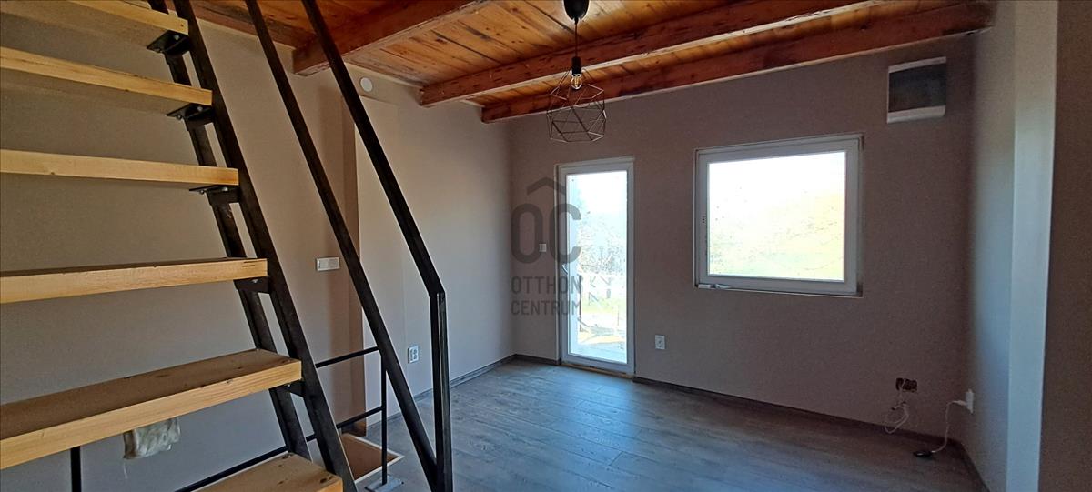 A földszinten összesen egy 14, 46 m²-es konyha, fürdőszoba, közlekedő található, valamint az épület oldalán kapcsolódik hozzá egy terasz, amelyek kellemes helyszínt biztosít egy nyugodt reggeli kávéhoz vagy esti pihenéshez.