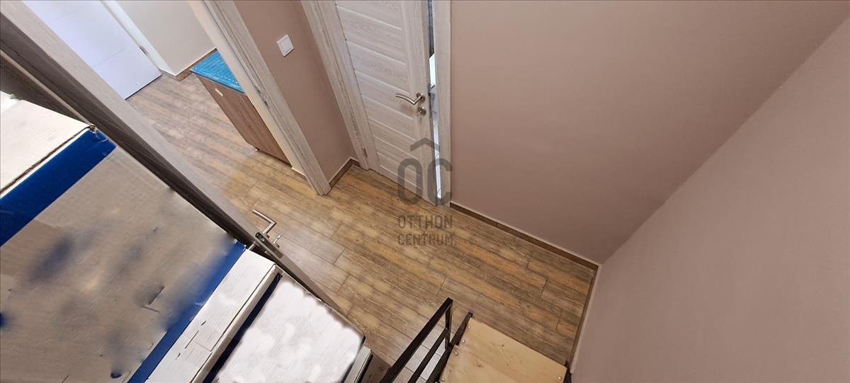 A belső terek burkolatai praktikusak és könnyen karbantarthatók: a konyha, fürdőszoba és közlekedő járólapos, a szobák laminált padlóval burkoltak, míg az erkély és a terasz betonos kialakítású.