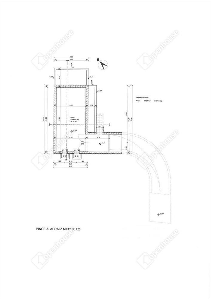 A gazdasági épület, Pince rész 58, 24m2: Földszínt hasznos alapterülete: 53, 74m2 + tornác: 18m2 + terasz 18m2. Leosztások: Tároló: 29, 44m2, fürdő: 4, 69m2, előtér: 3, 84m2, tároló: 17, 77m2.