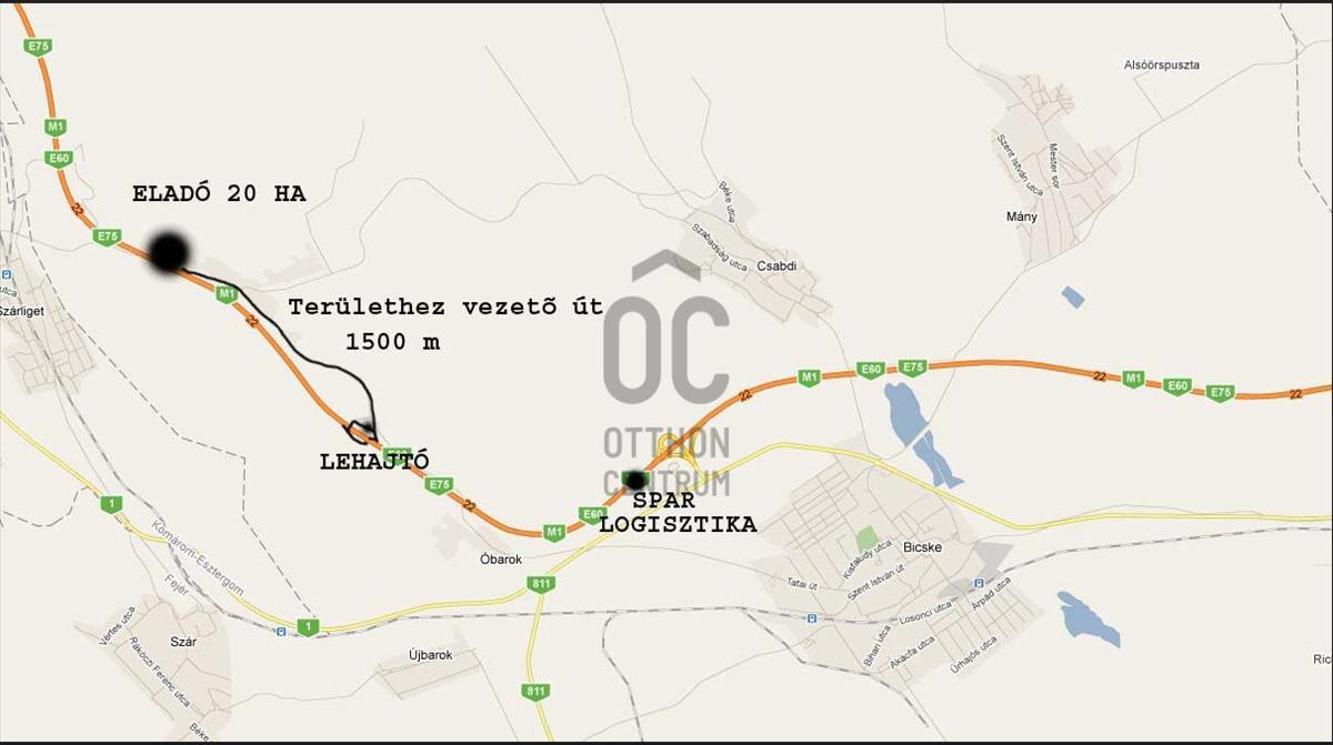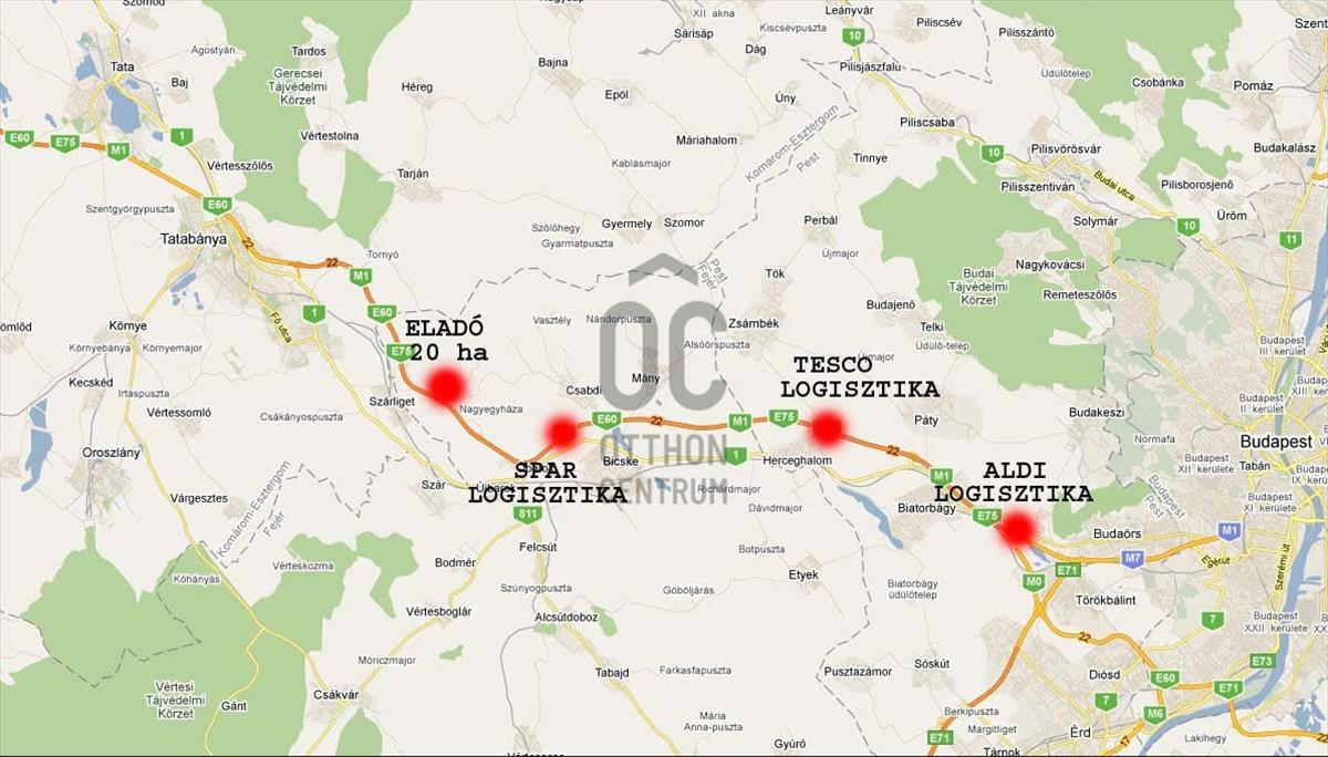 Eladó 19, 2 ha beruházási terület az m1 mellett 60 %-os beépíthetőséggel