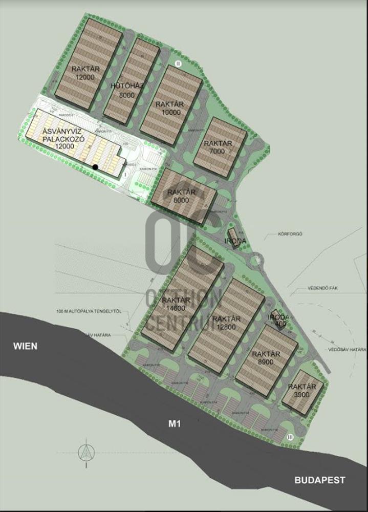 Eladó 19,2 ha beruházási terület az M1 mellett 60 %-os beépíth...